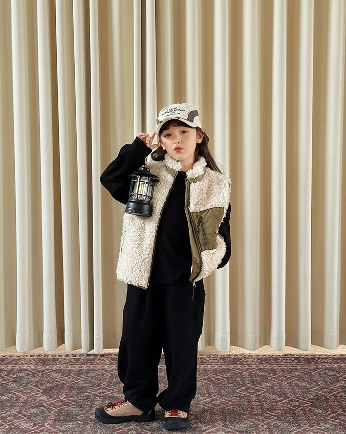 立体感のあるボアフリースに、配色ナイロンのジップポケットが映えるデザイン。