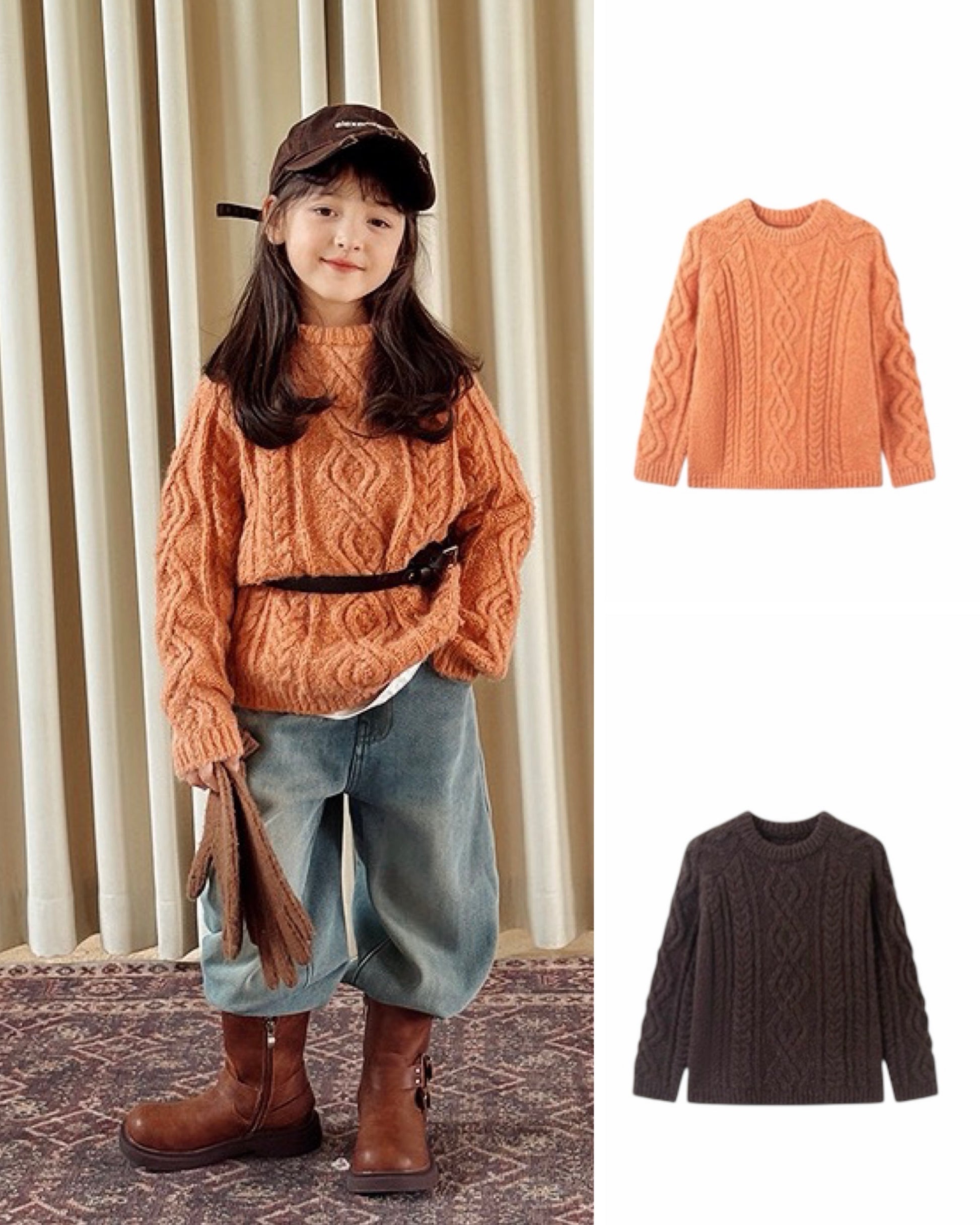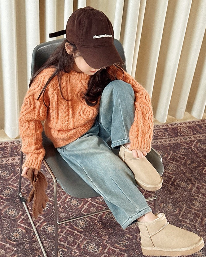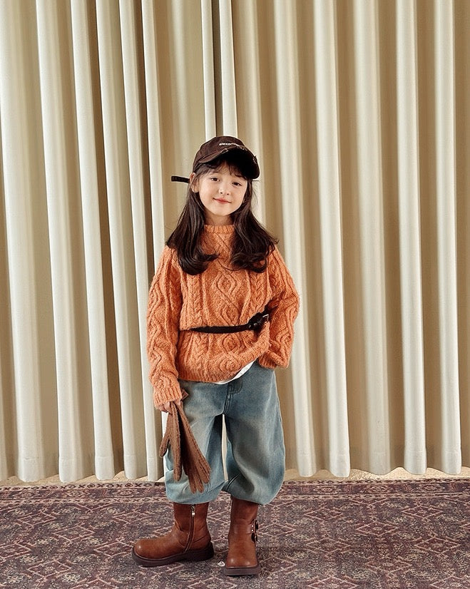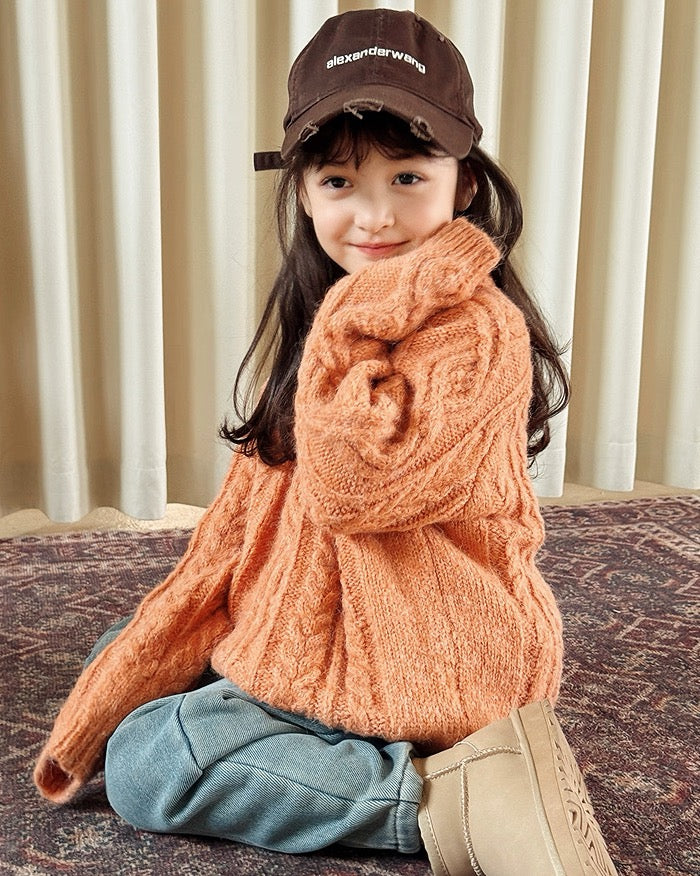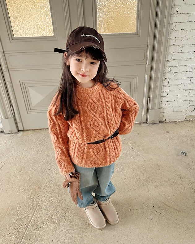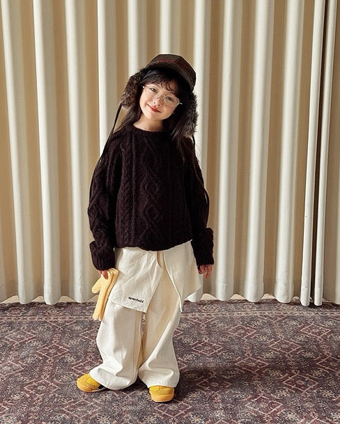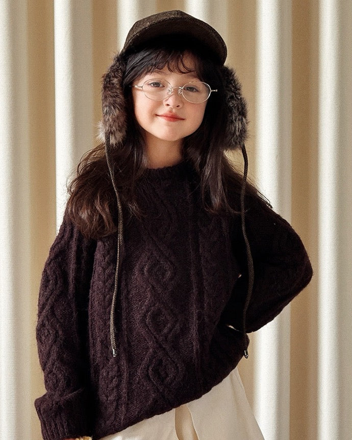 【100-160cm】ウールケーブルニットプルオーバー