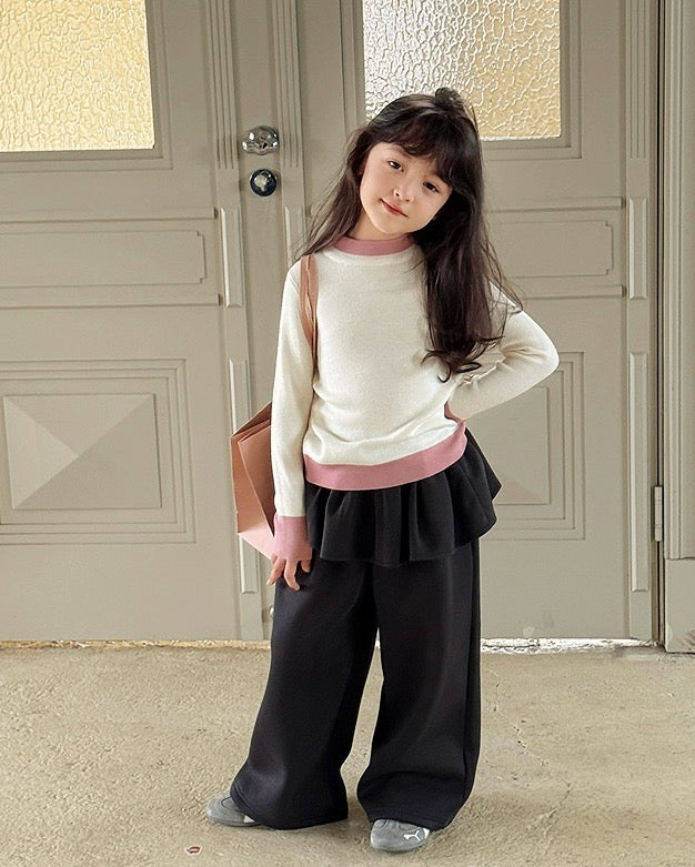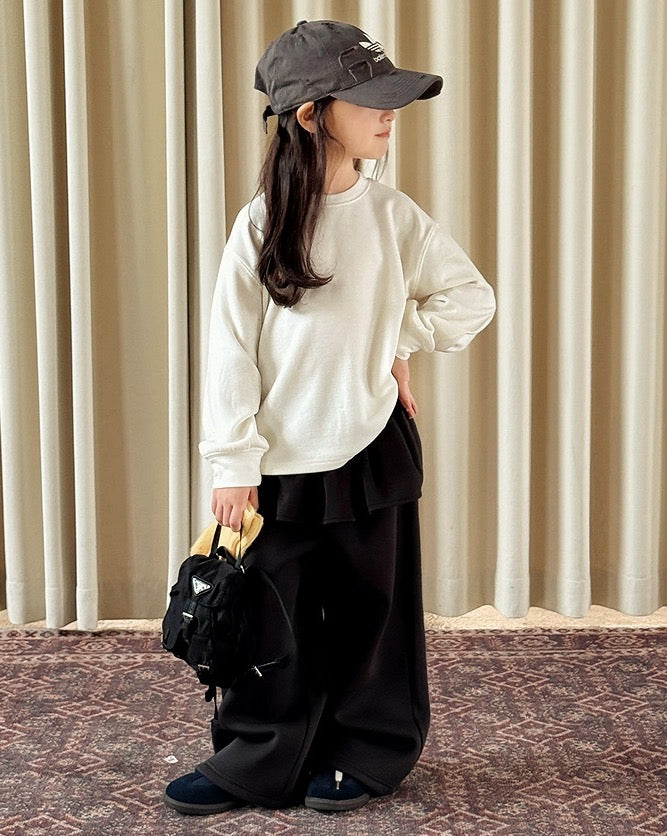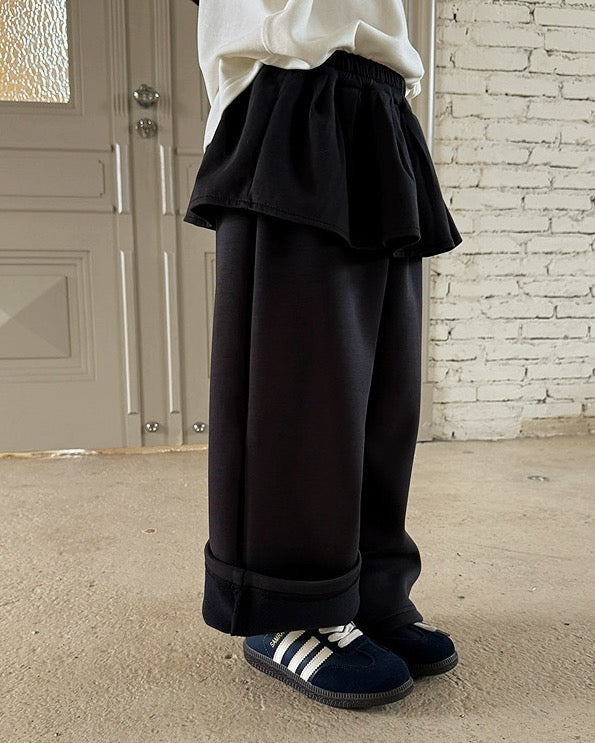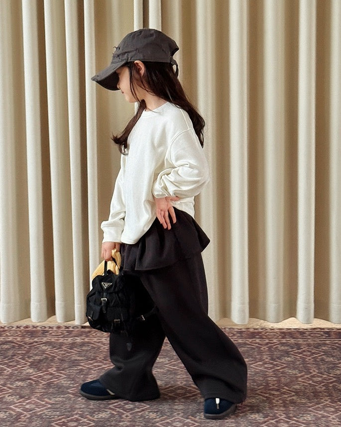 【100-160cm】裏起毛ペプラムワイドパンツ