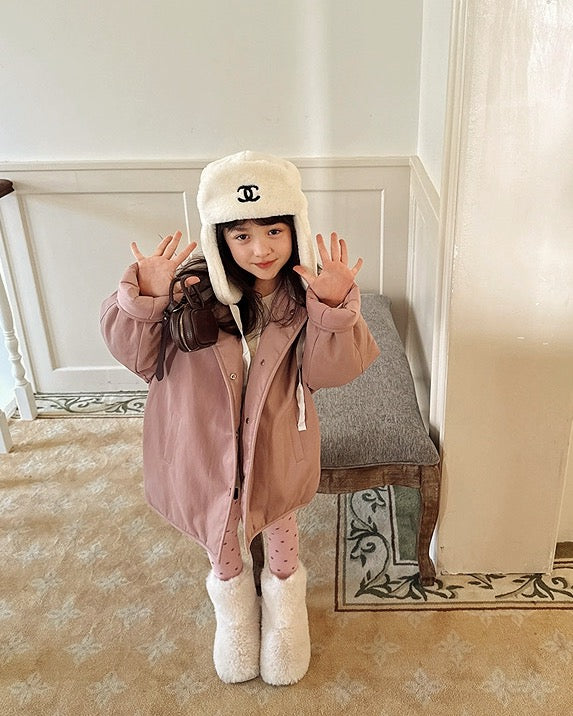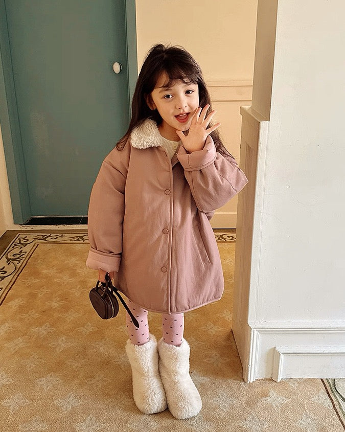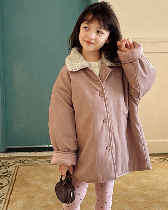【100-160cm】ボア衿フェイクレザーパデッドジャケット