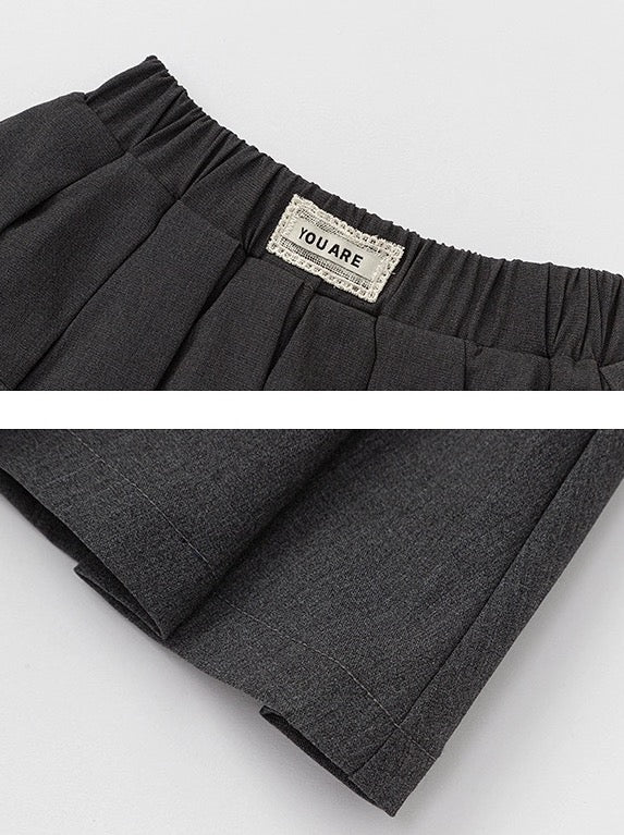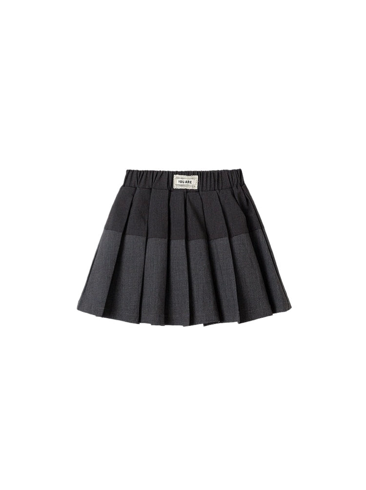 シンプルでスタイリッシュなプリーツスカート。ハリ感のある素材で、きれいなシルエットをキープしながらも動きやすいデザイン。ウエストはゴム仕様で快適なフィット感を実現。通園・通学からお出かけまで幅広く活躍するアイテム。