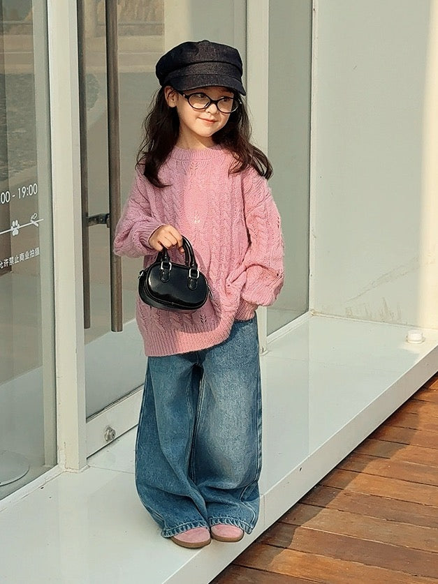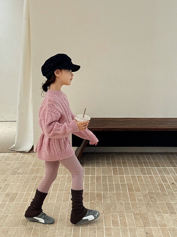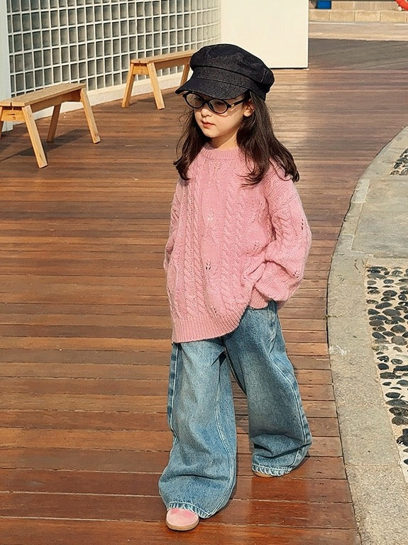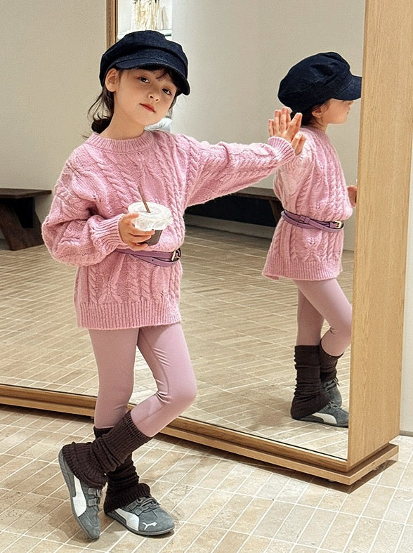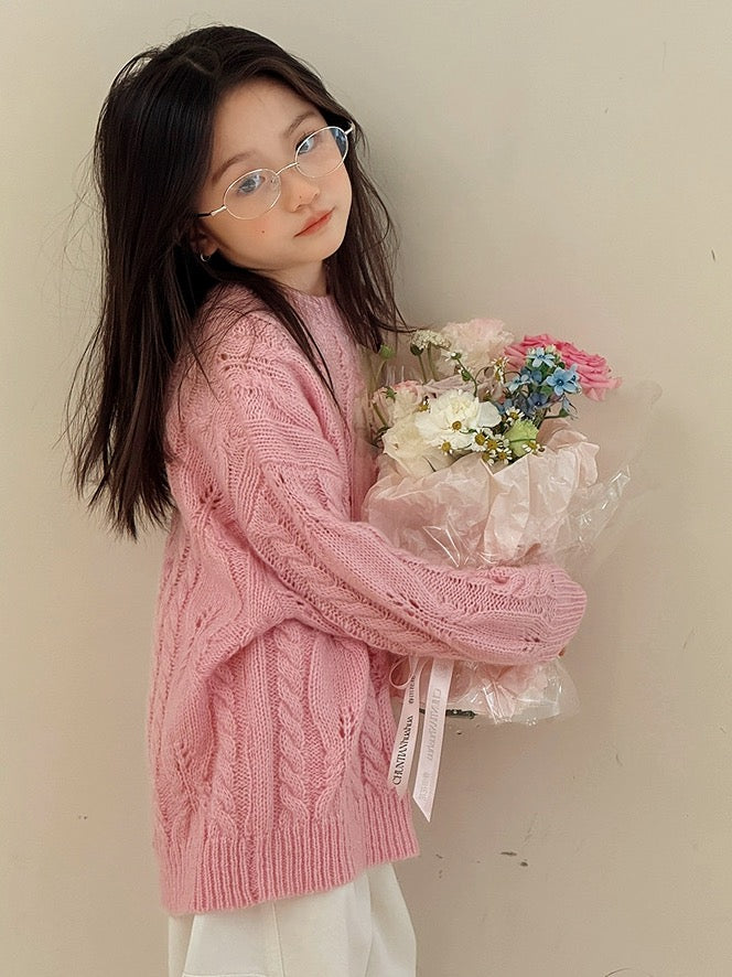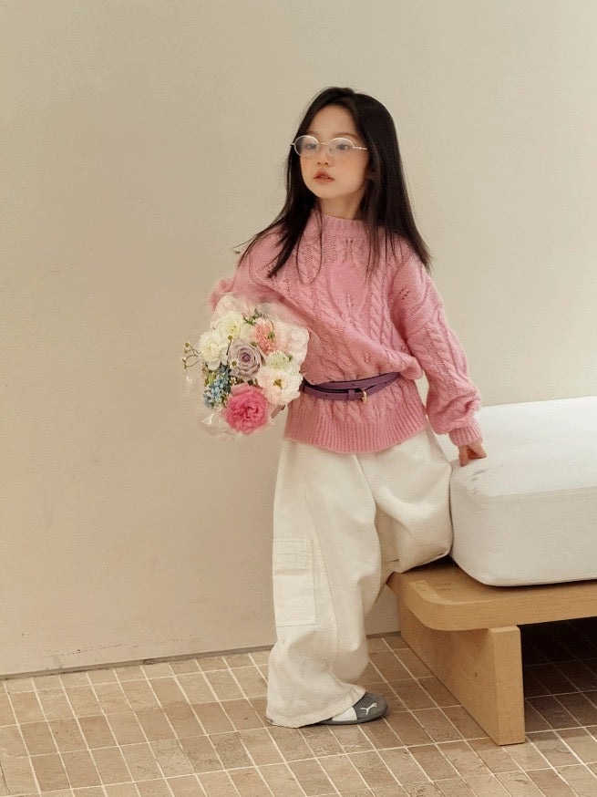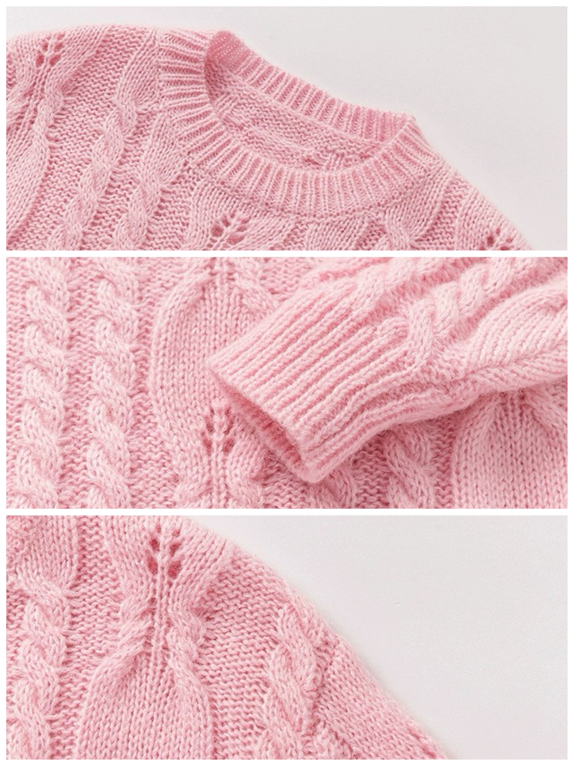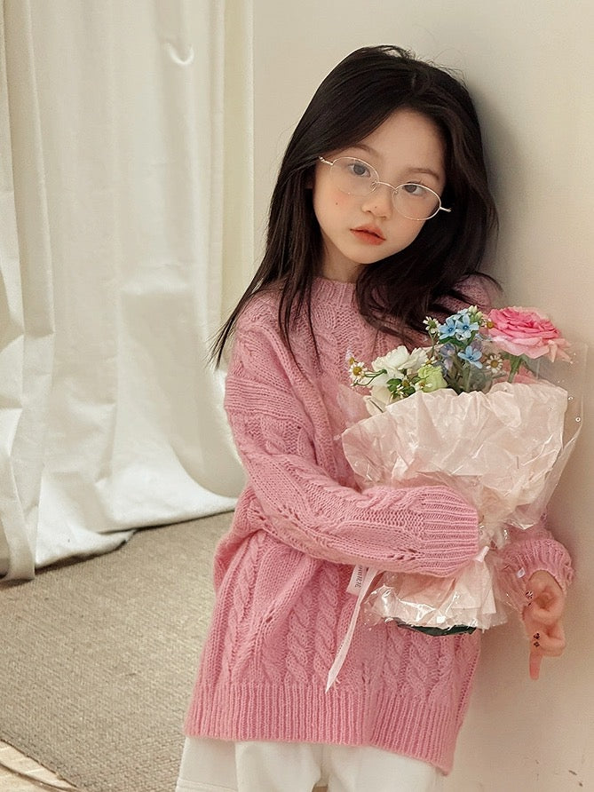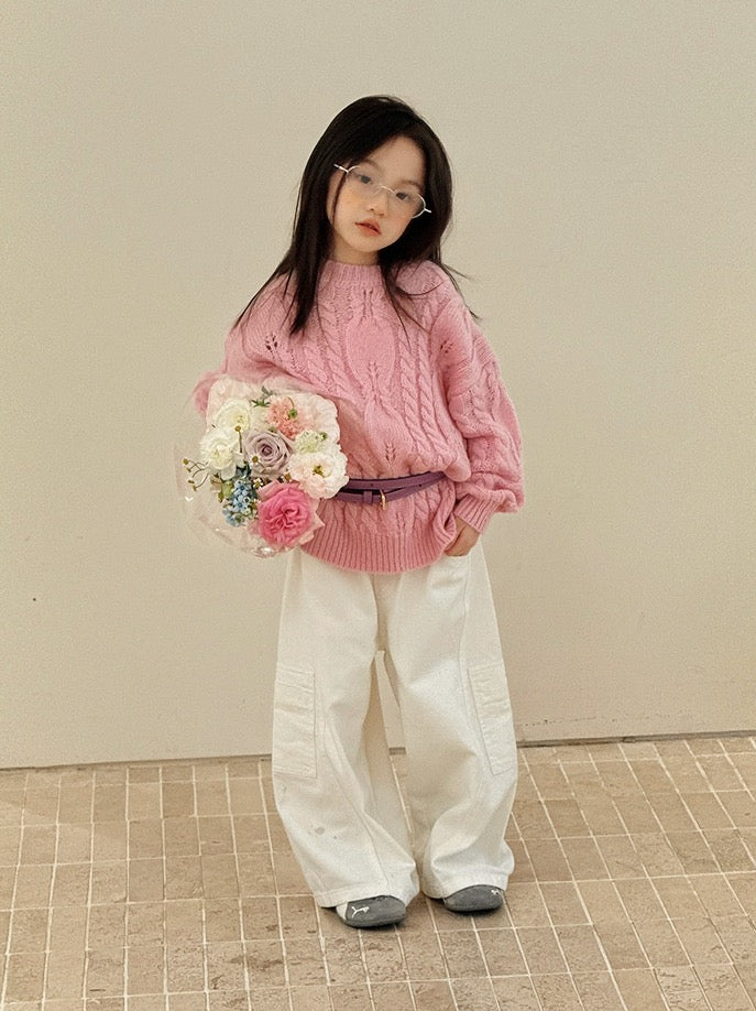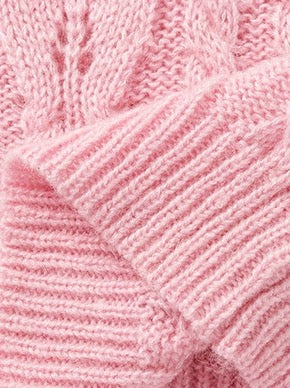 やわらかなケーブル編みが魅力のニットプルオーバー。立体感のある模様と優しいピンクカラーがガーリーな雰囲気を演出する一枚。ほどよくゆったりとしたシルエットで、秋冬のデイリーコーデに活躍する。
