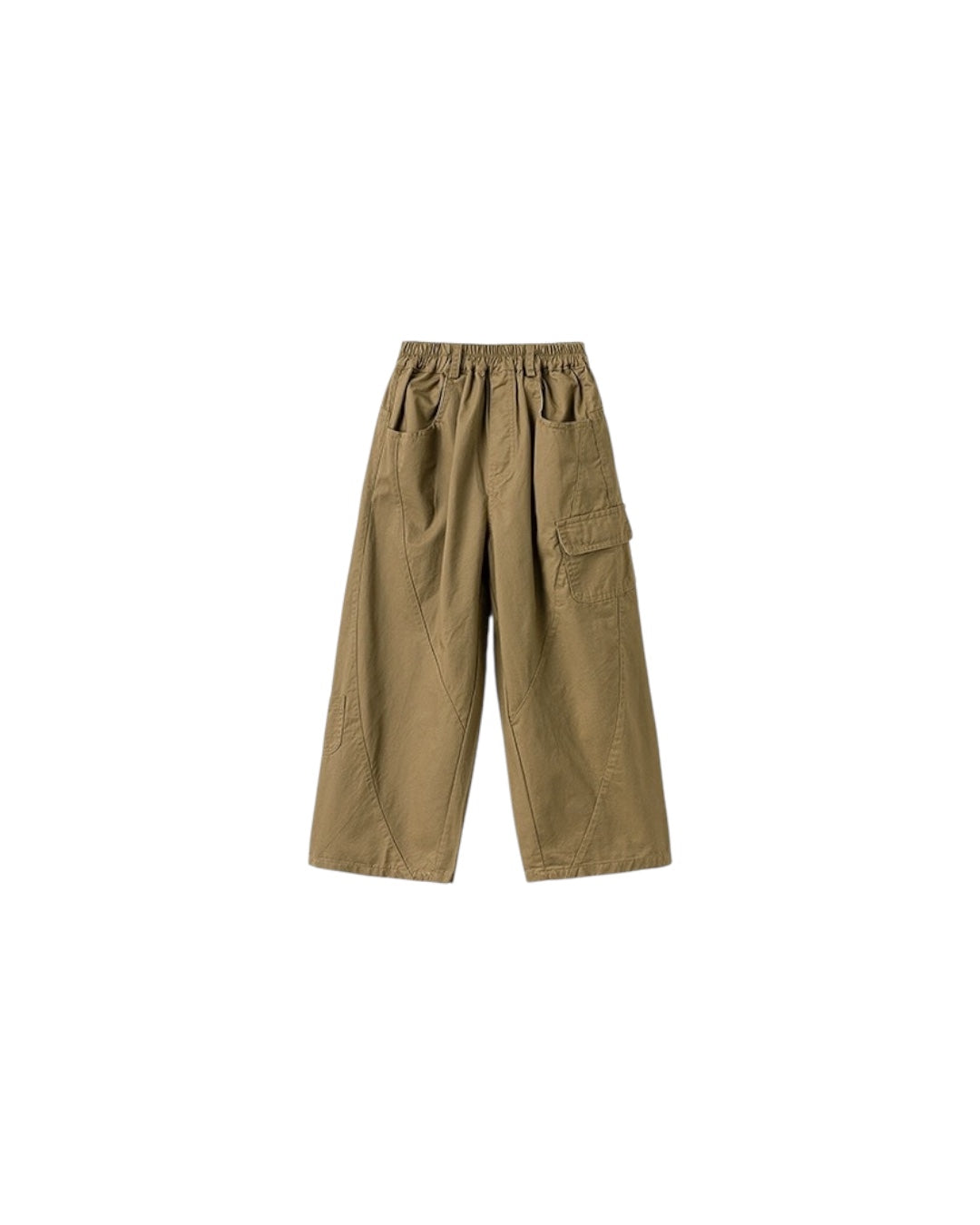 ワイドなシルエットとカーゴポケットが特徴のカジュアルパンツ。コットン素材を使用し、デイリー使いに最適。動きやすさと耐久性を兼ね備え、ナチュラルな風合いが魅力。