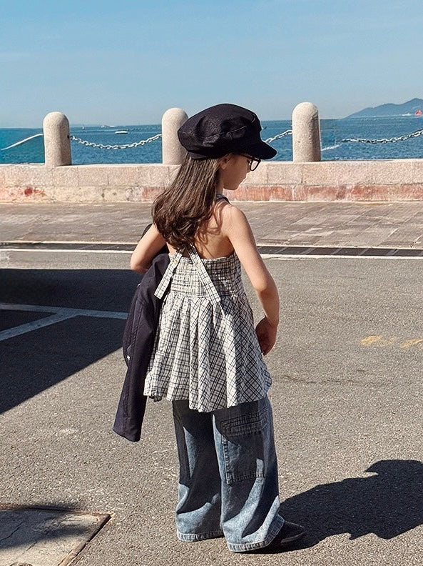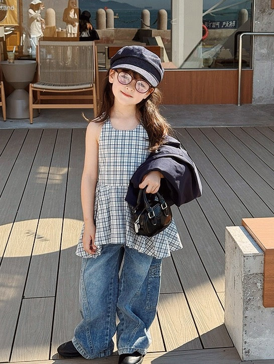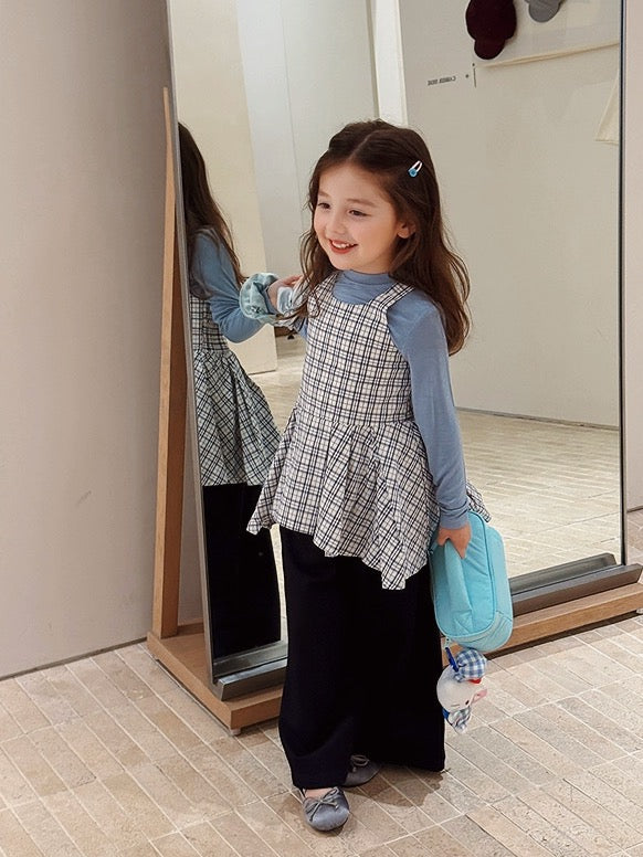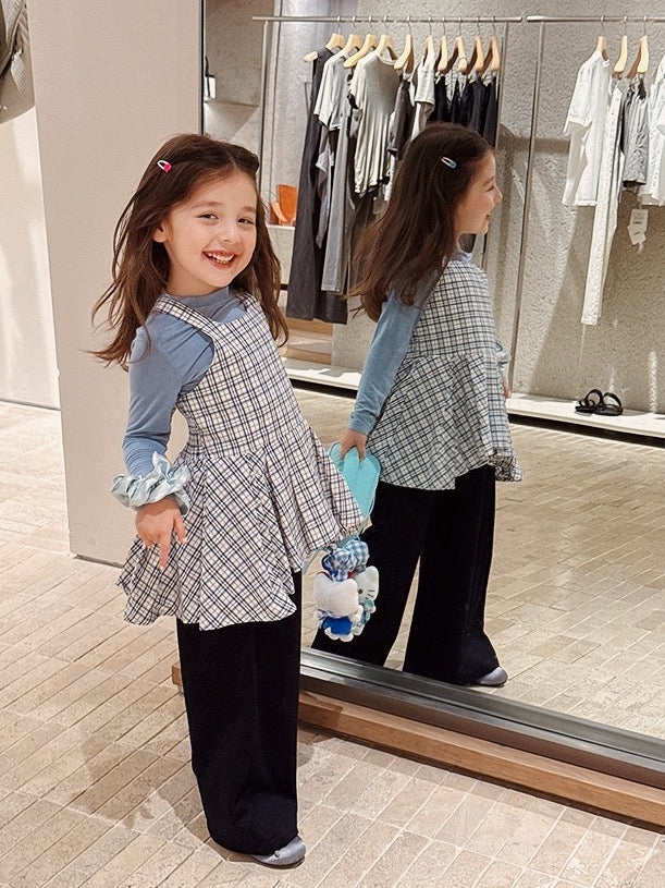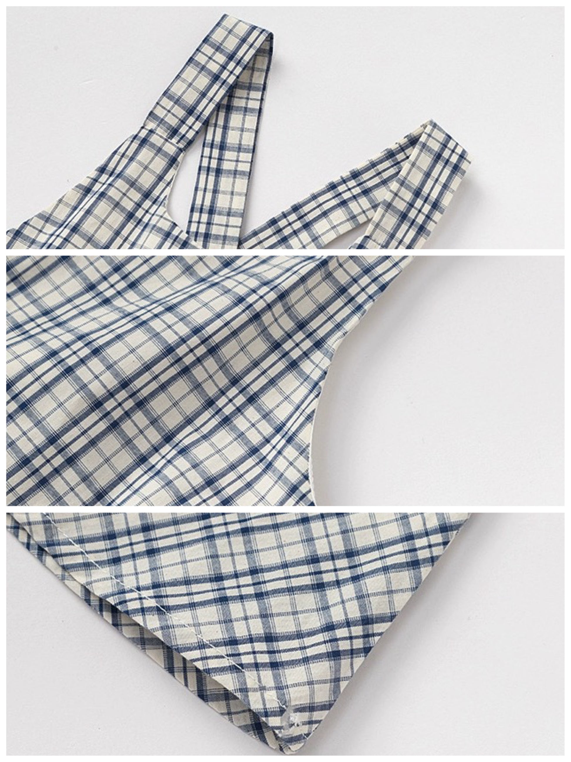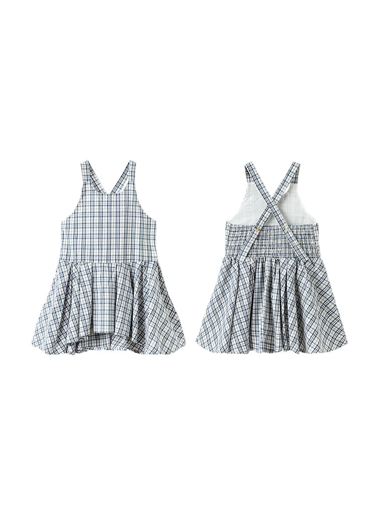 爽やかなチェック柄のチュニック。クロスした肩紐がデザインのポイントで、ぺプラムシルエットが可愛らしい印象。軽やかな素材感で、レイヤードスタイルにも合わせやすい一枚。
