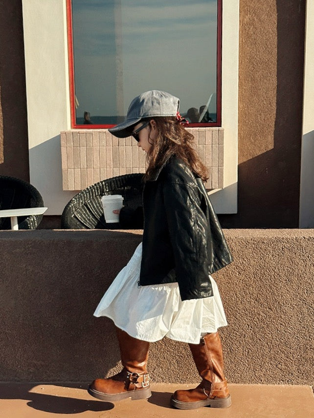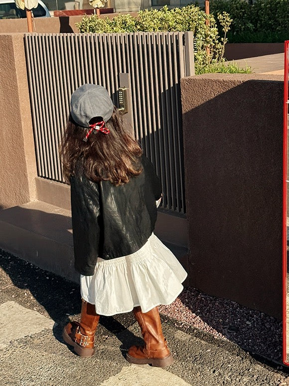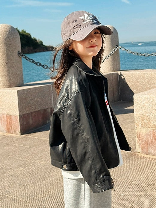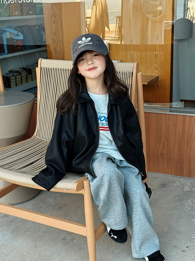 【100-160cm】フロントジップフェイクレザージャケット