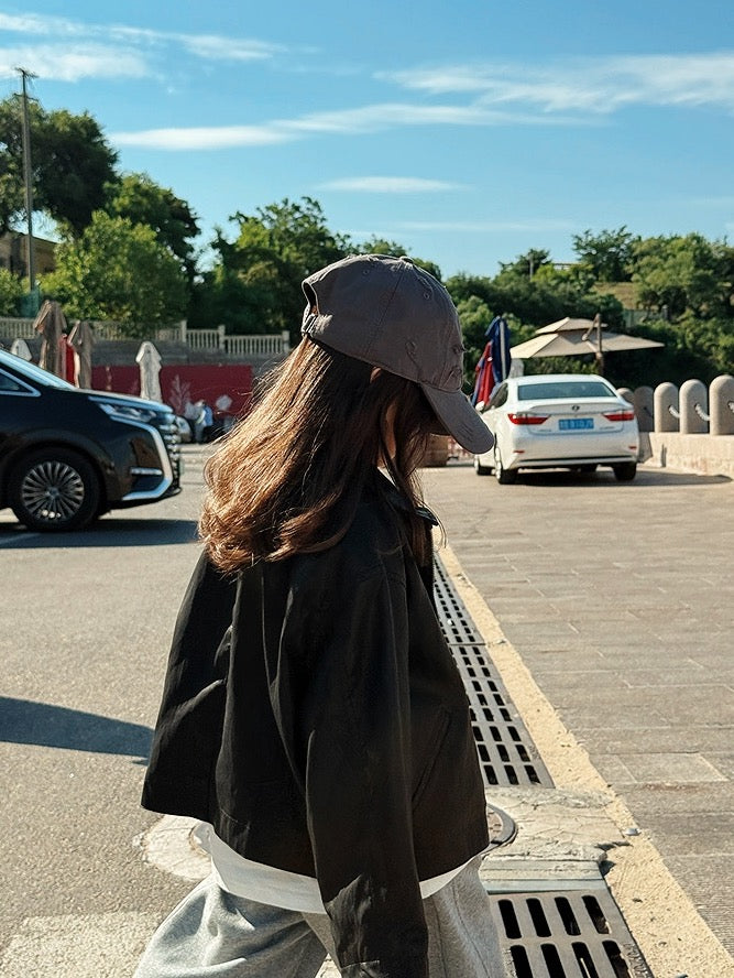 シンプルなデザインのフェイクレザージャケット。ジップアップ仕様で、サイドにはファスナーポケットを配置。ほどよいシワ感のある素材で、コーディネートに馴染みやすいディテール。ゆったりとしたシルエットで重ね着もしやすい。