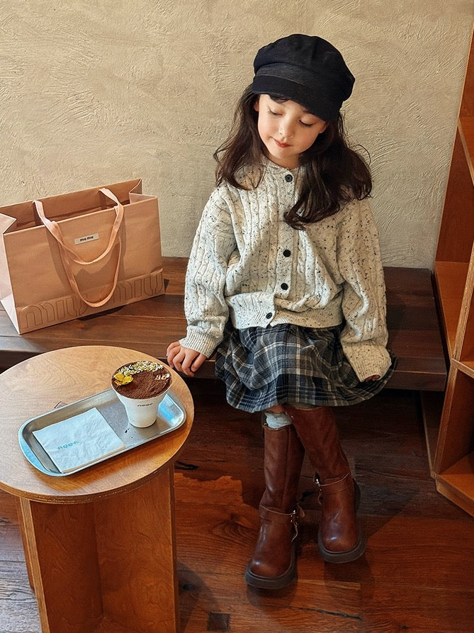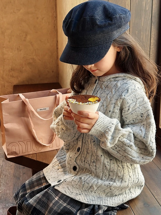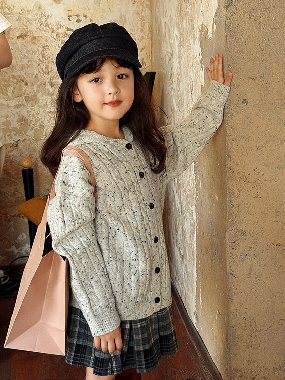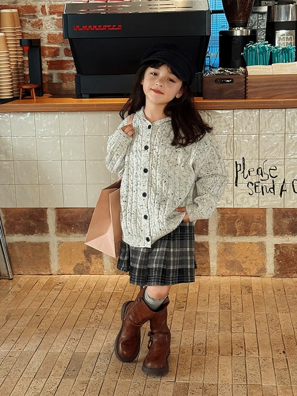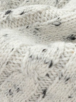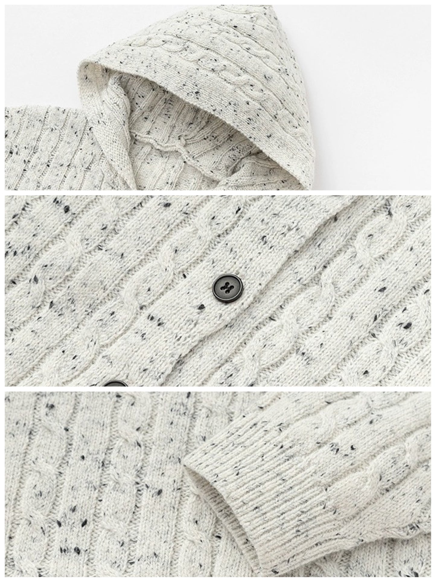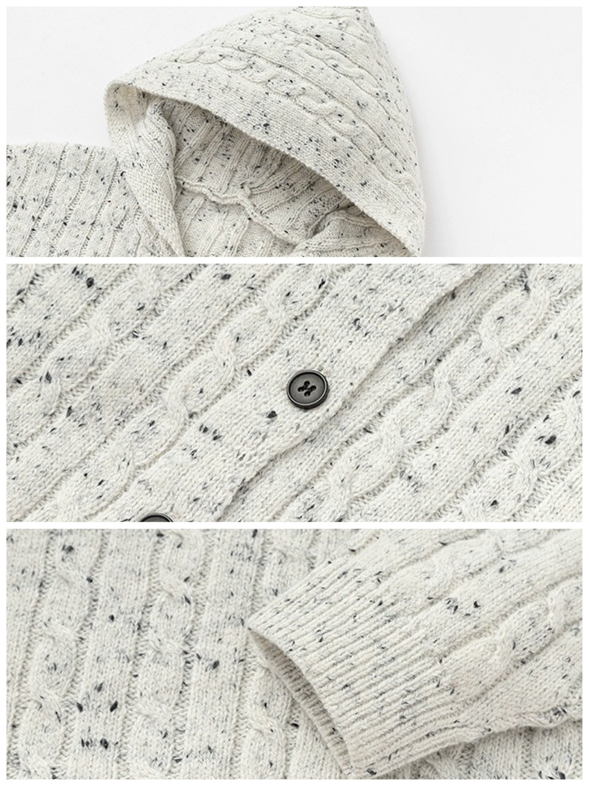 ざっくりとしたケーブル編みに、フード付きのデザインがポイントのニットカーディガン。ミックスヤーンを使用し、自然なニュアンスと立体感を演出。ゆったりとしたシルエットで、カジュアルにもナチュラルにも合わせやすい一枚。