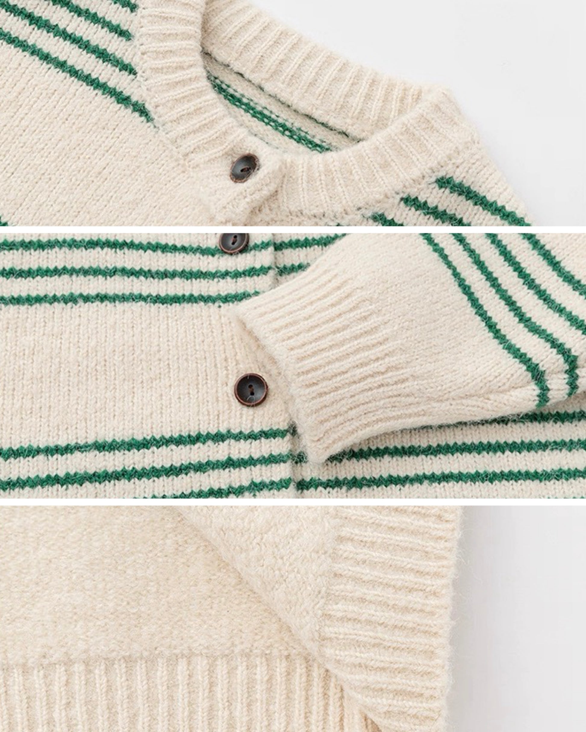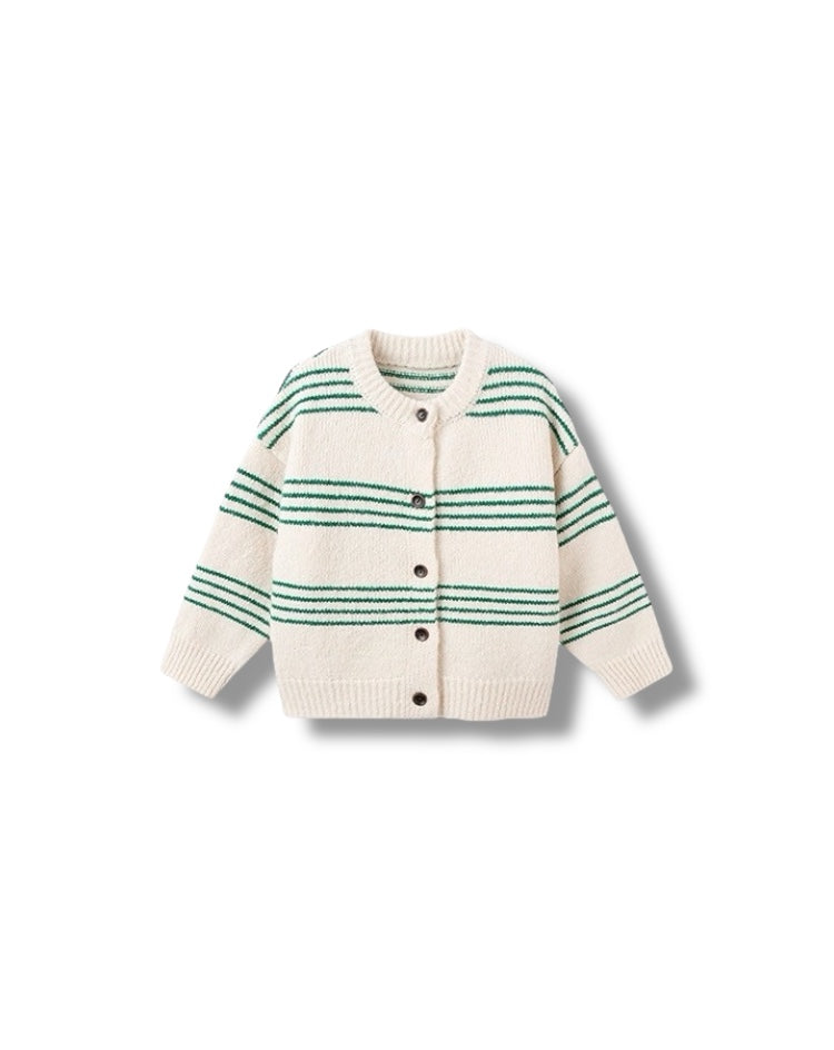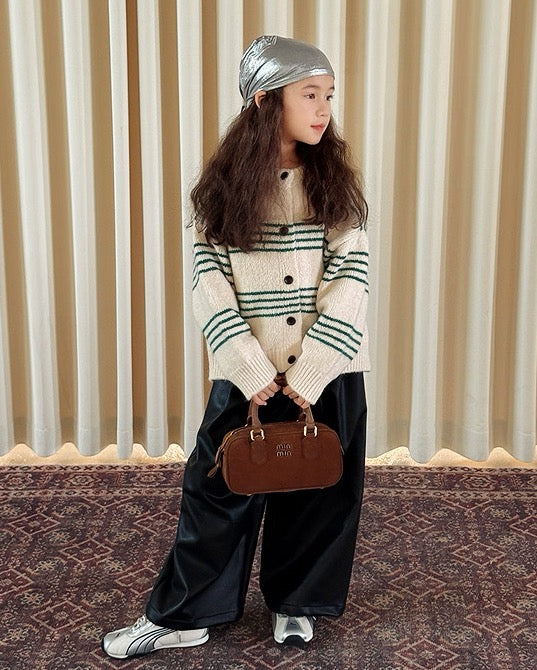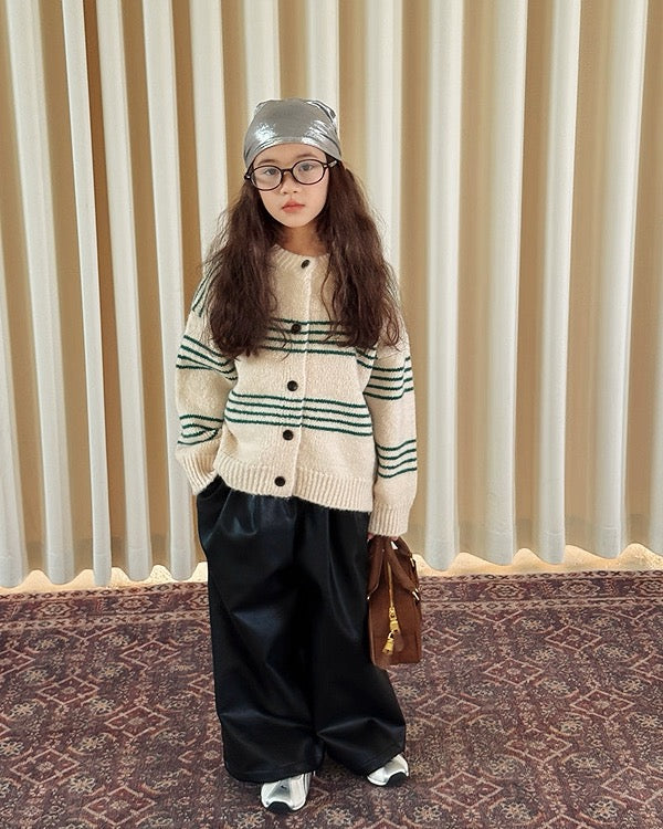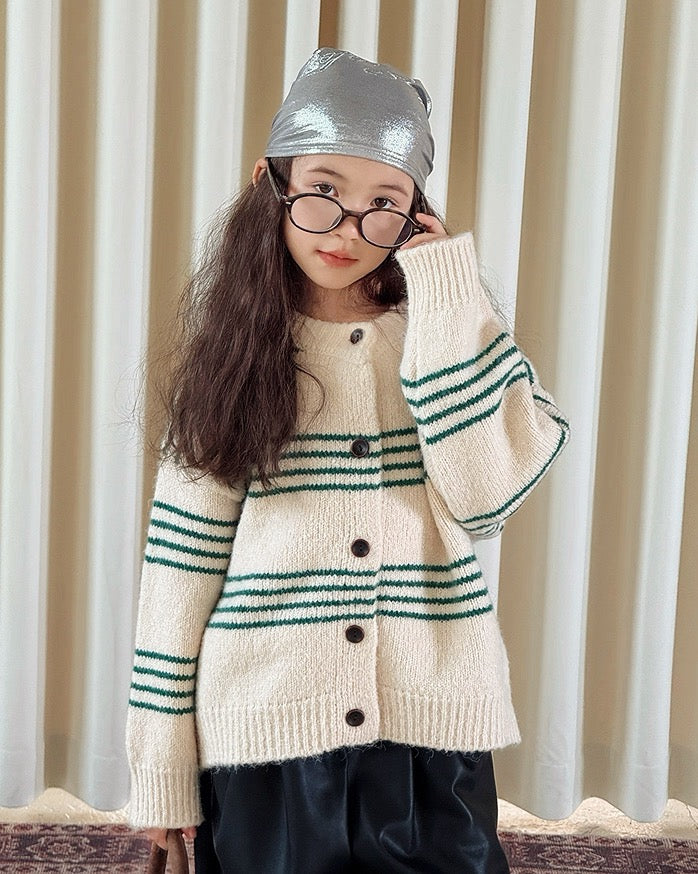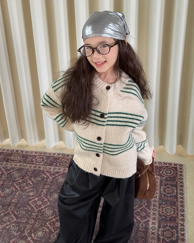 【100-160cm】アクリル ボーダー ニット カーディガン