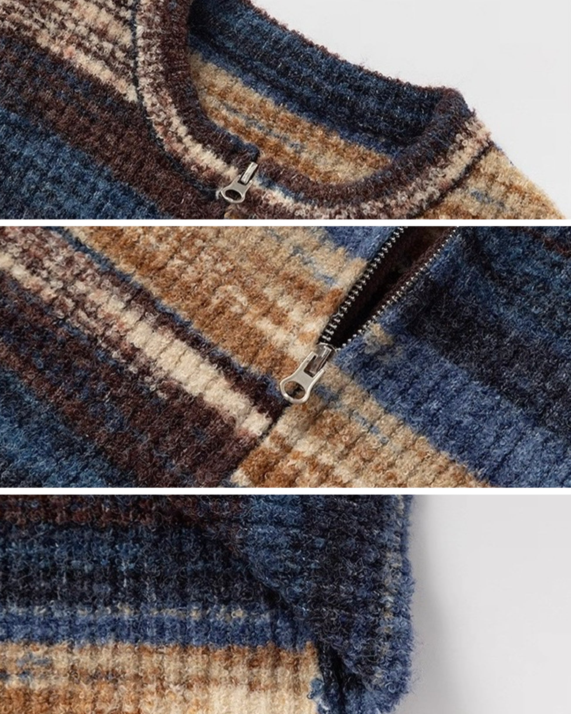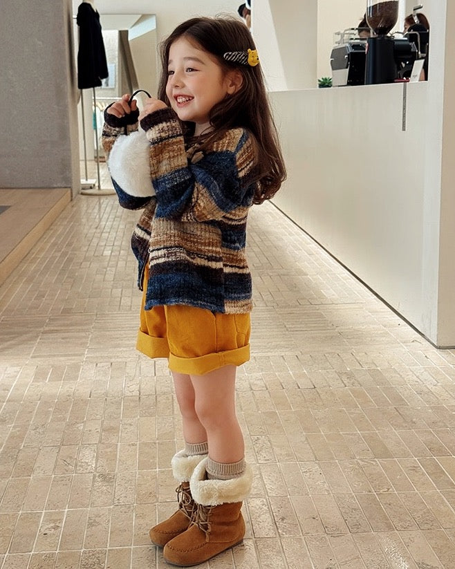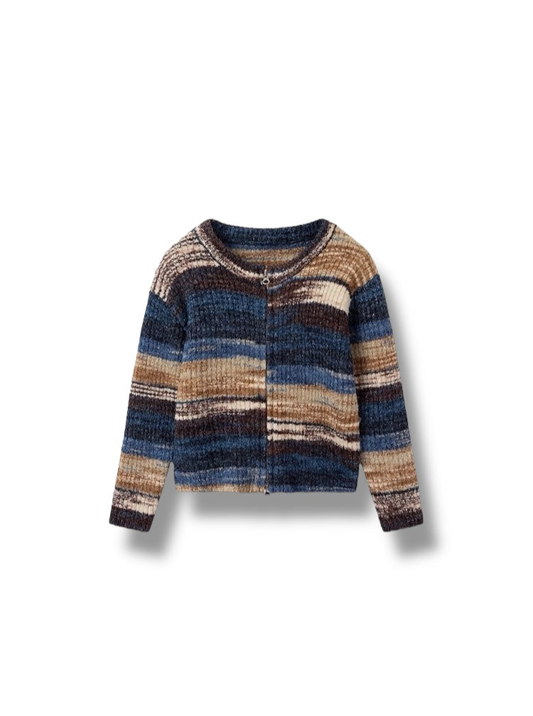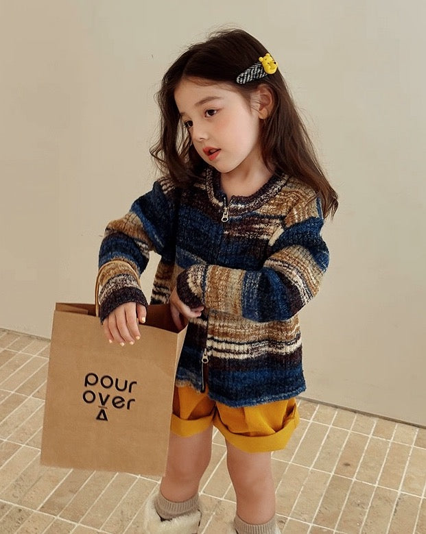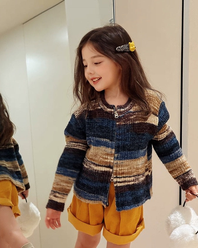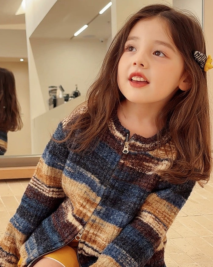 【100-160cm】ダブルジップ 配色ボーダーカーディガン