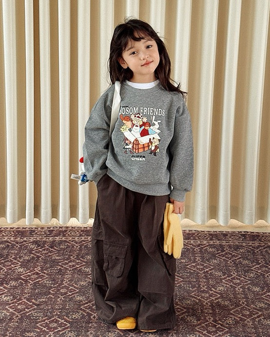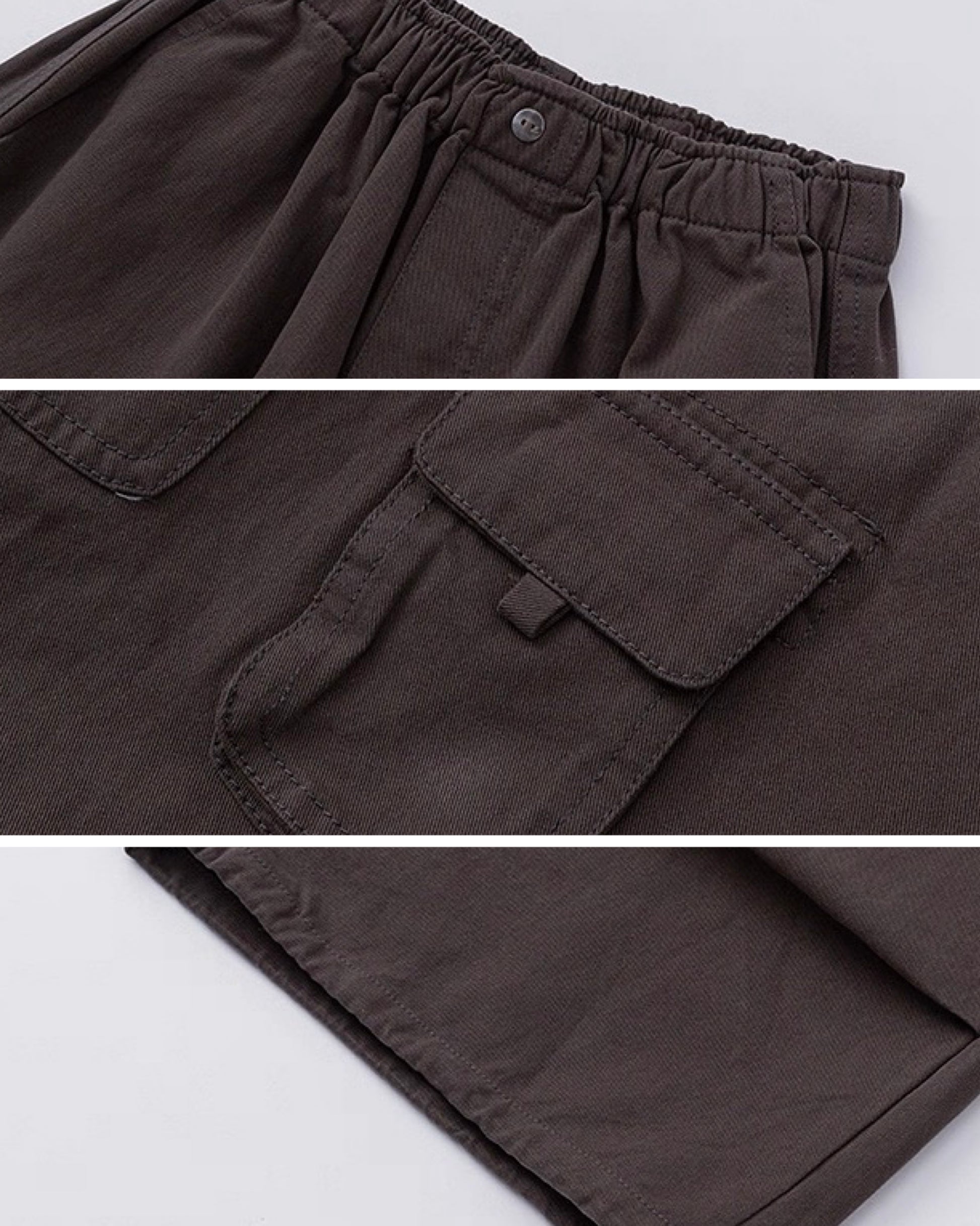 柔らかなコットン素材で動きやすく、季節を問わず着用できるデザイン。