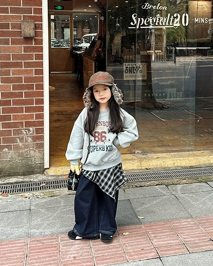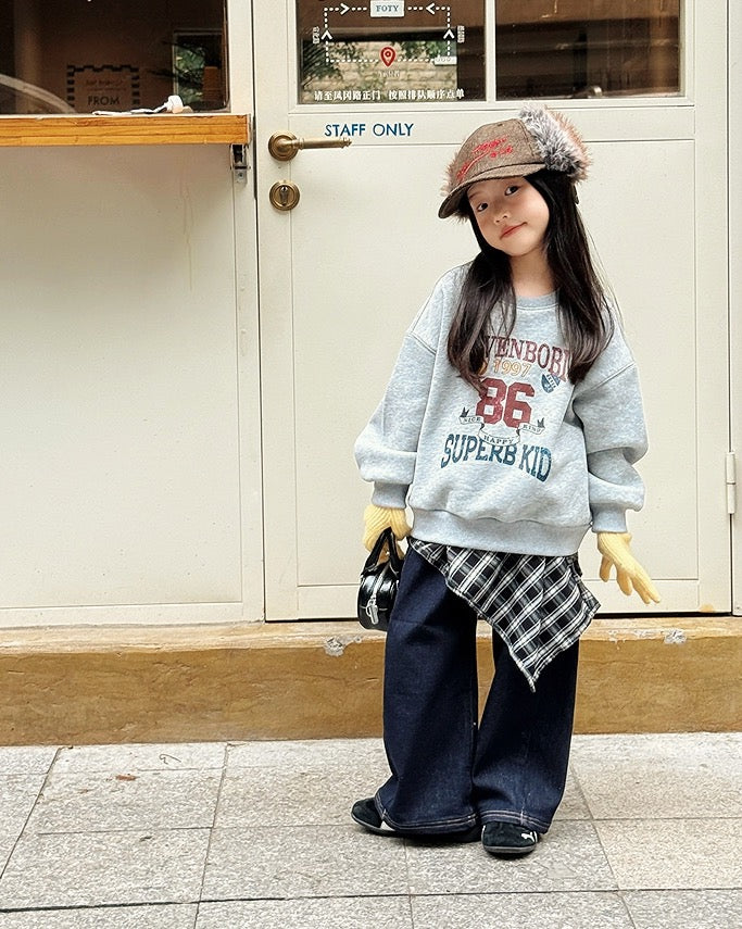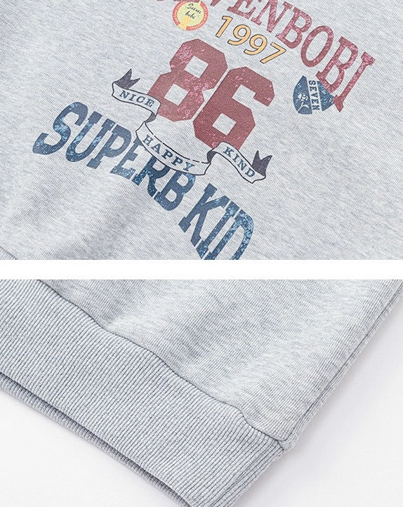 【100-160cm】カレッジ風プリント 裏ボアスウェットプルオーバー