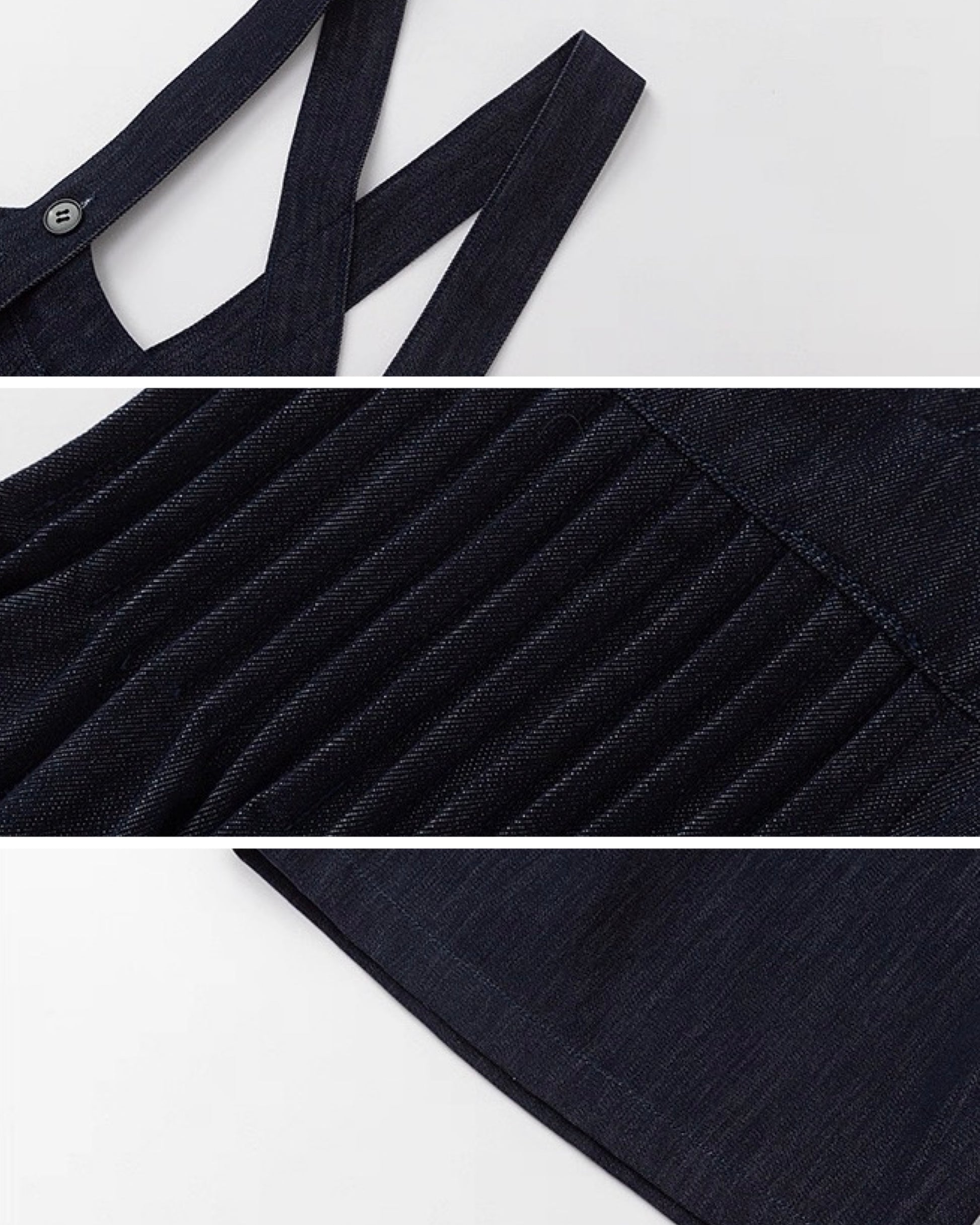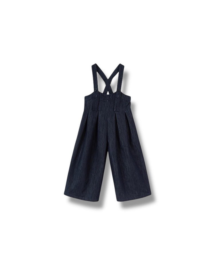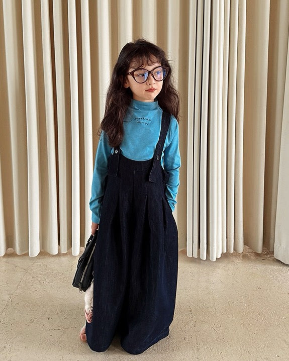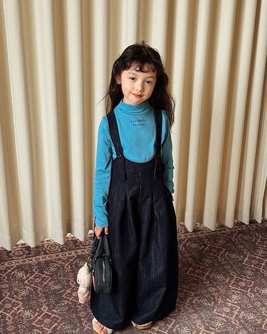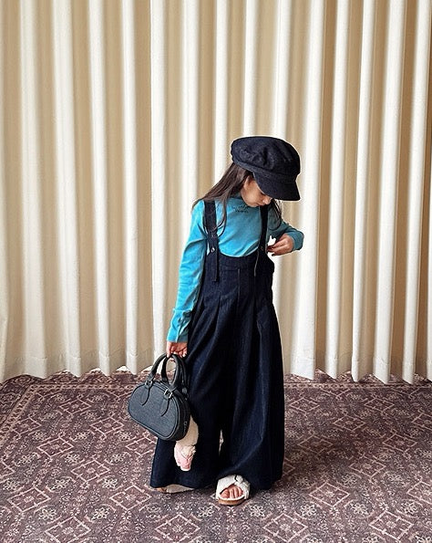 【100-160cm】バックプリーツ デニム ワイドパンツ サロペット
