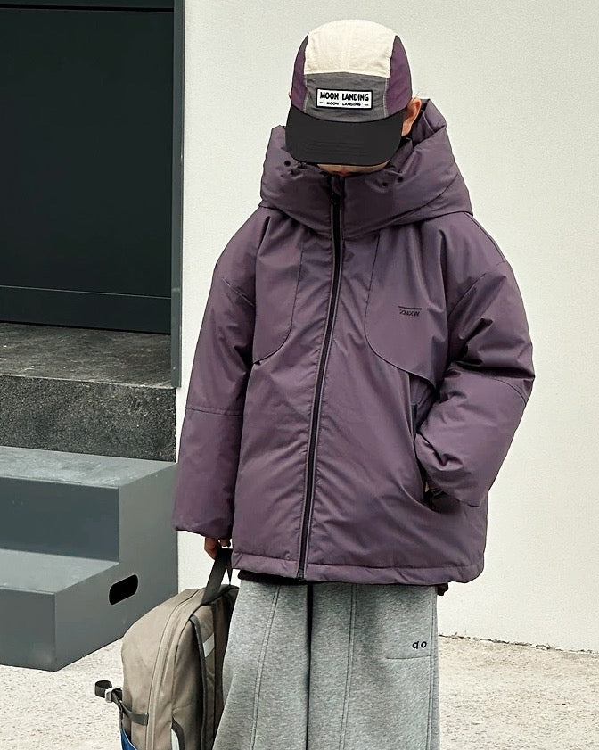 軽量で保温性に優れたダウンジャケット。90%ホワイトダックダウンを使用し、ふんわりとした着心地と高い防寒性を両立。シンプルながらもボリュームのあるシルエットで、デイリーにもアウトドアにも活躍する一着。