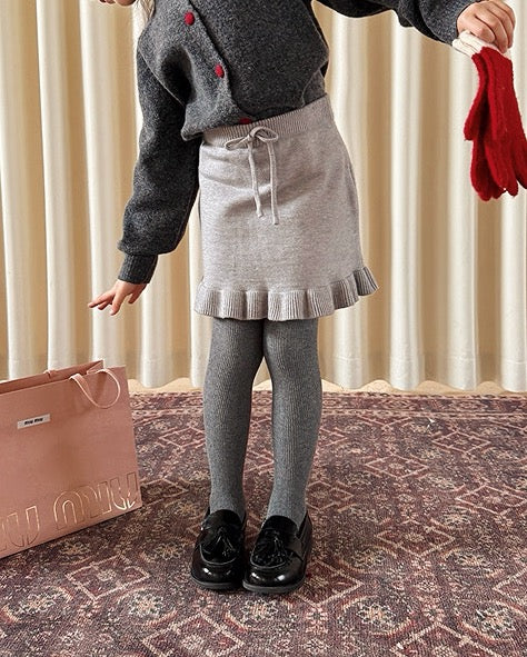 裾のフリルが印象的なニットスカート。柔らかな素材感で動きやすく、シンプルながらも上品なスタイルに仕上がる一枚。タイツやブーツとの相性も抜群。