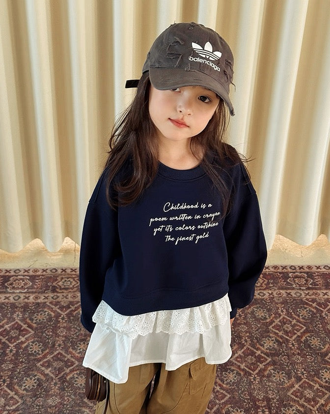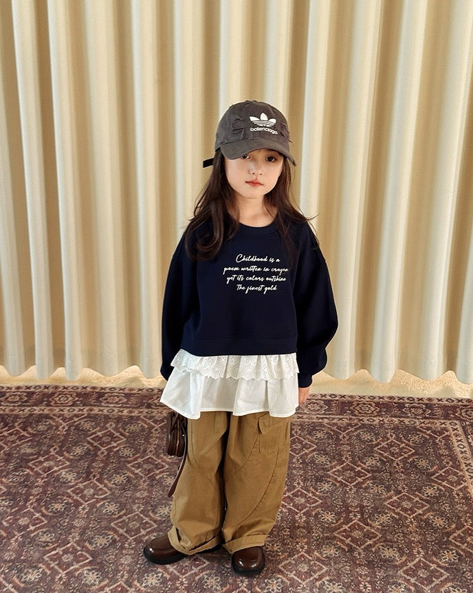 【100-160cm】レイヤードレーススウェットプルオーバー