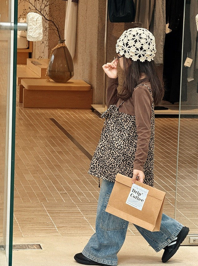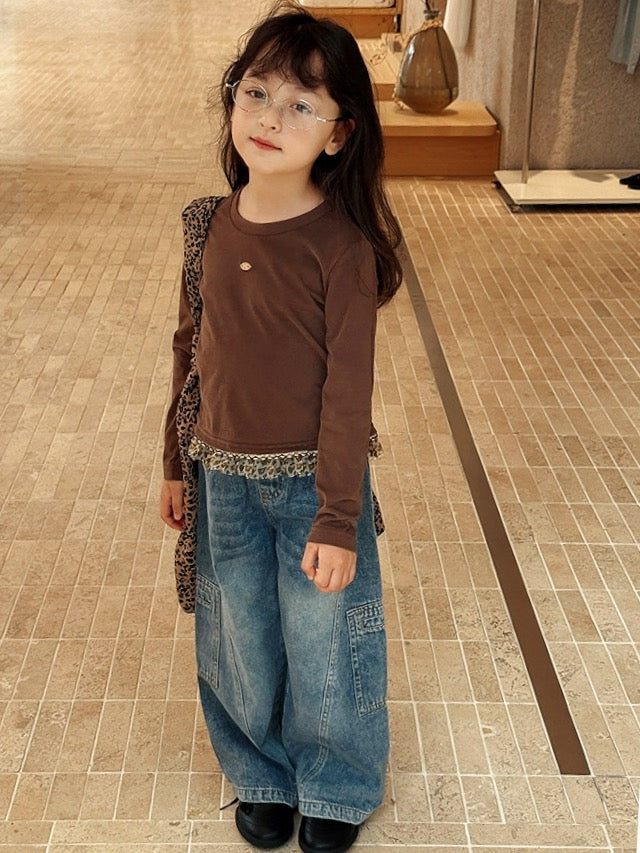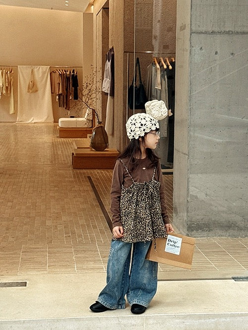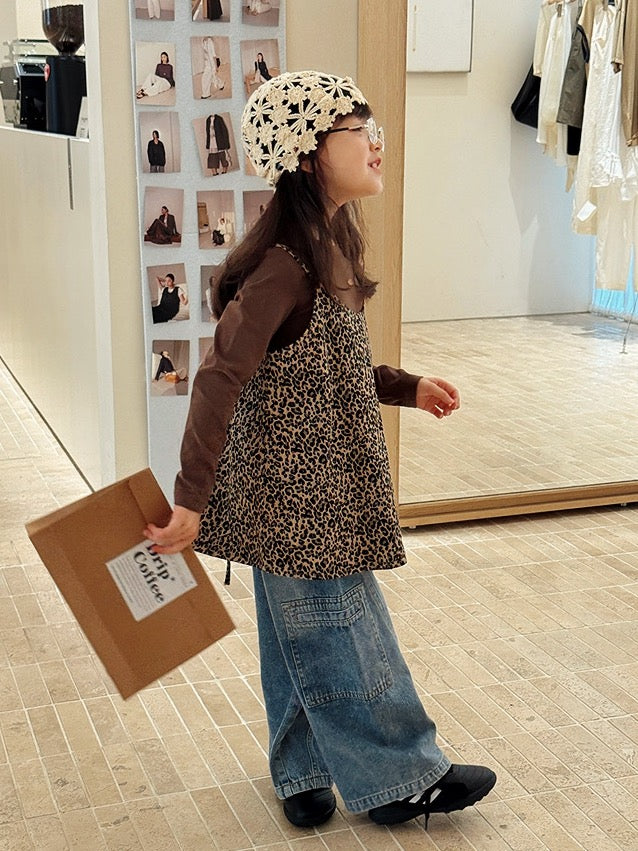 【100-160cm】レオパードロングスリーブTシャツ / キャミソール