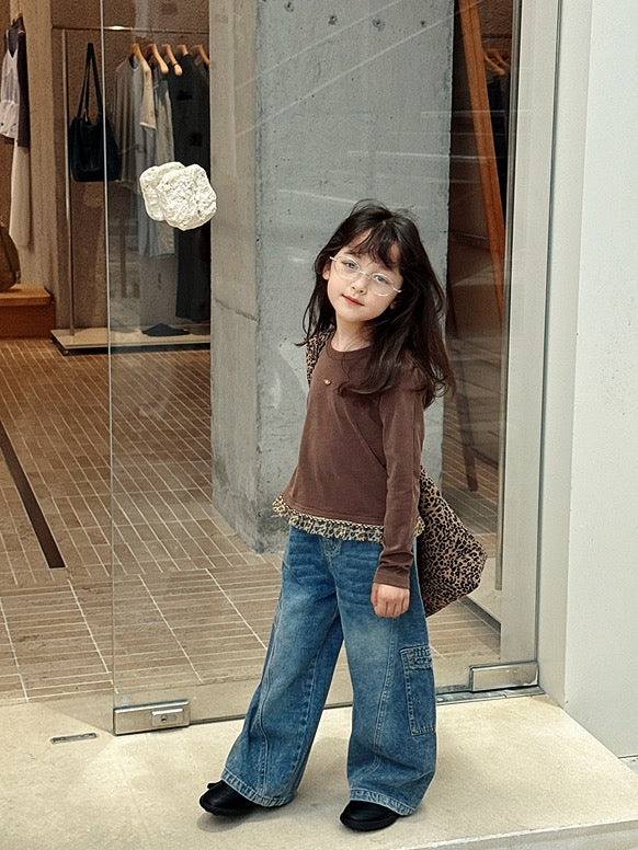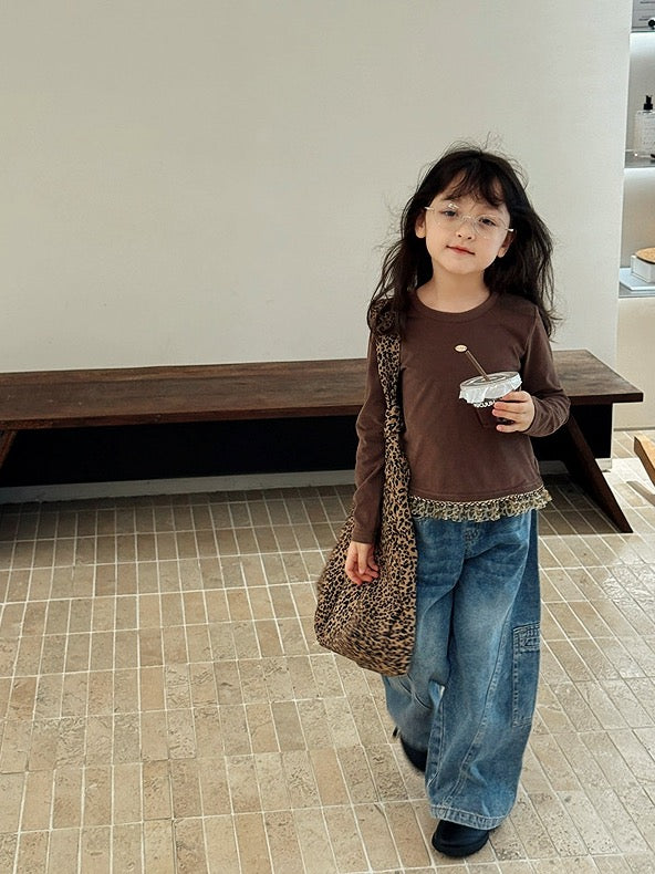 裾にレオパード柄のフリルをあしらったロングスリーブTシャツと、レオパードキャミソール。