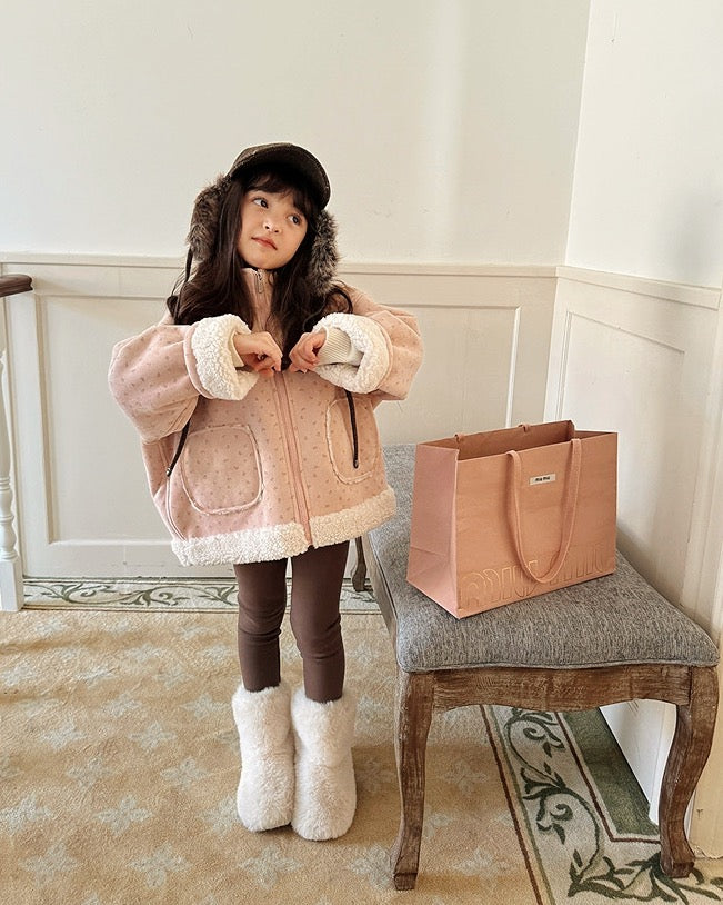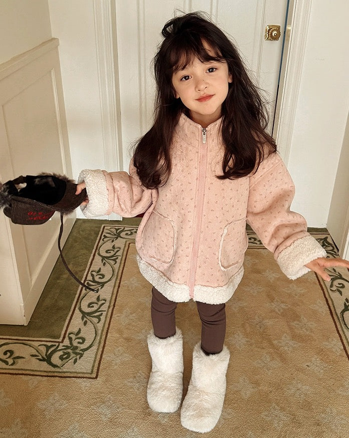 淡いピンクに小花模様を散りばめたボアジャケット。
