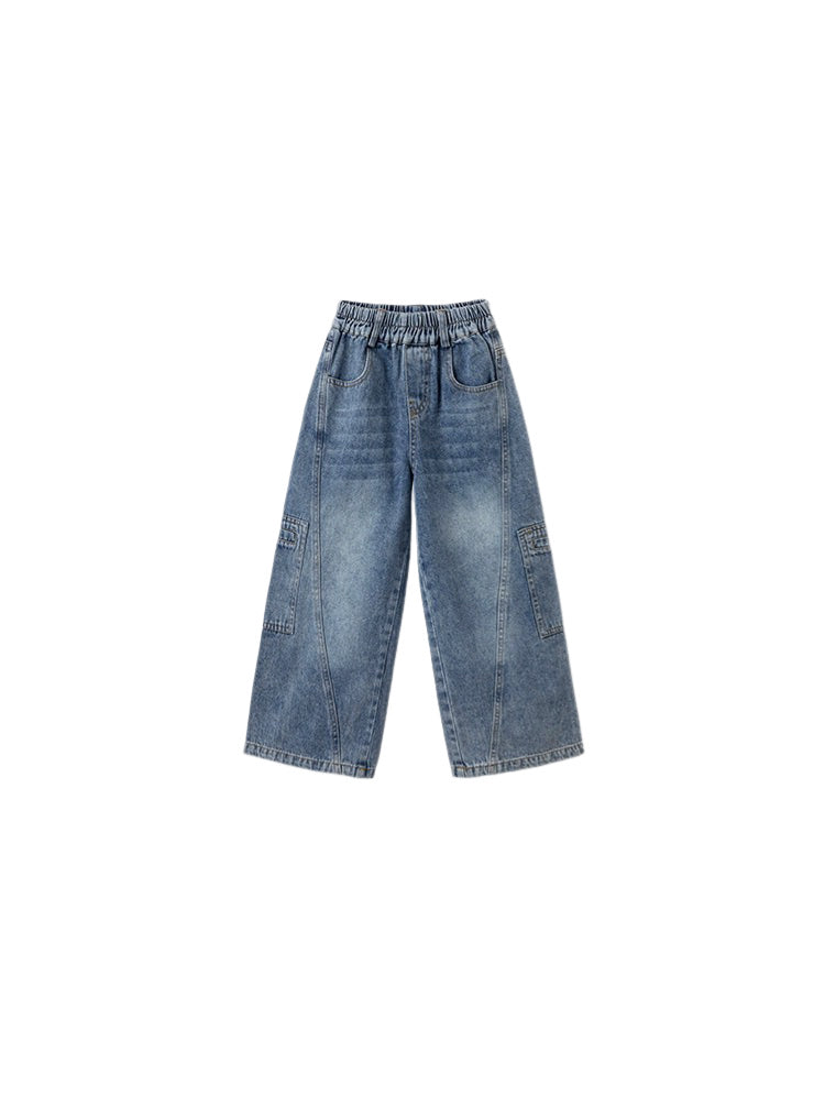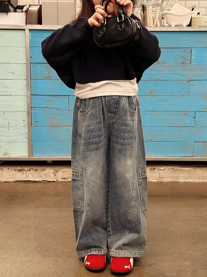 【100-160cm】ウォッシュドストレートデニム