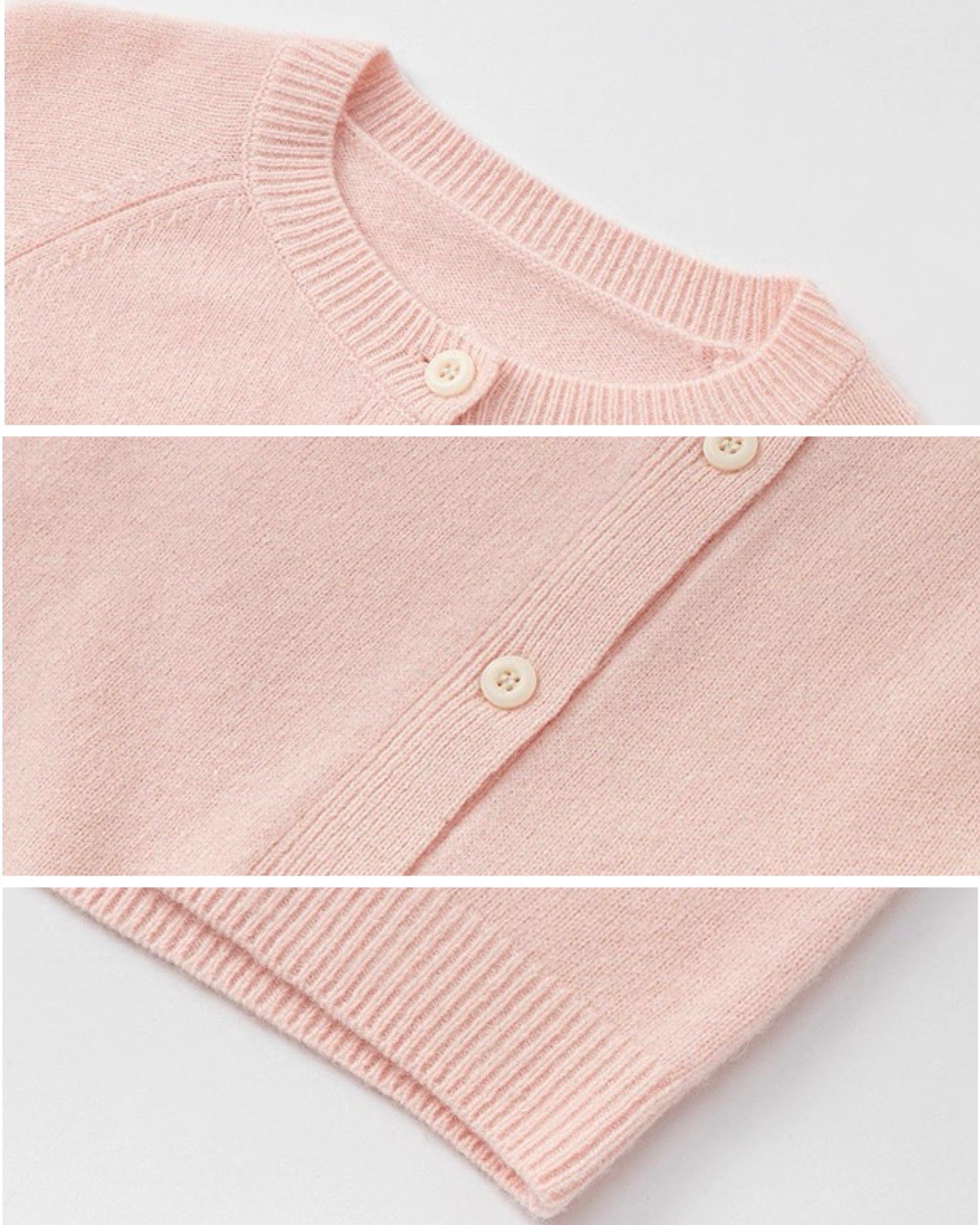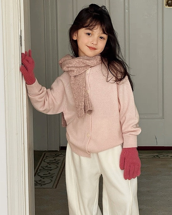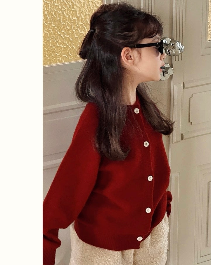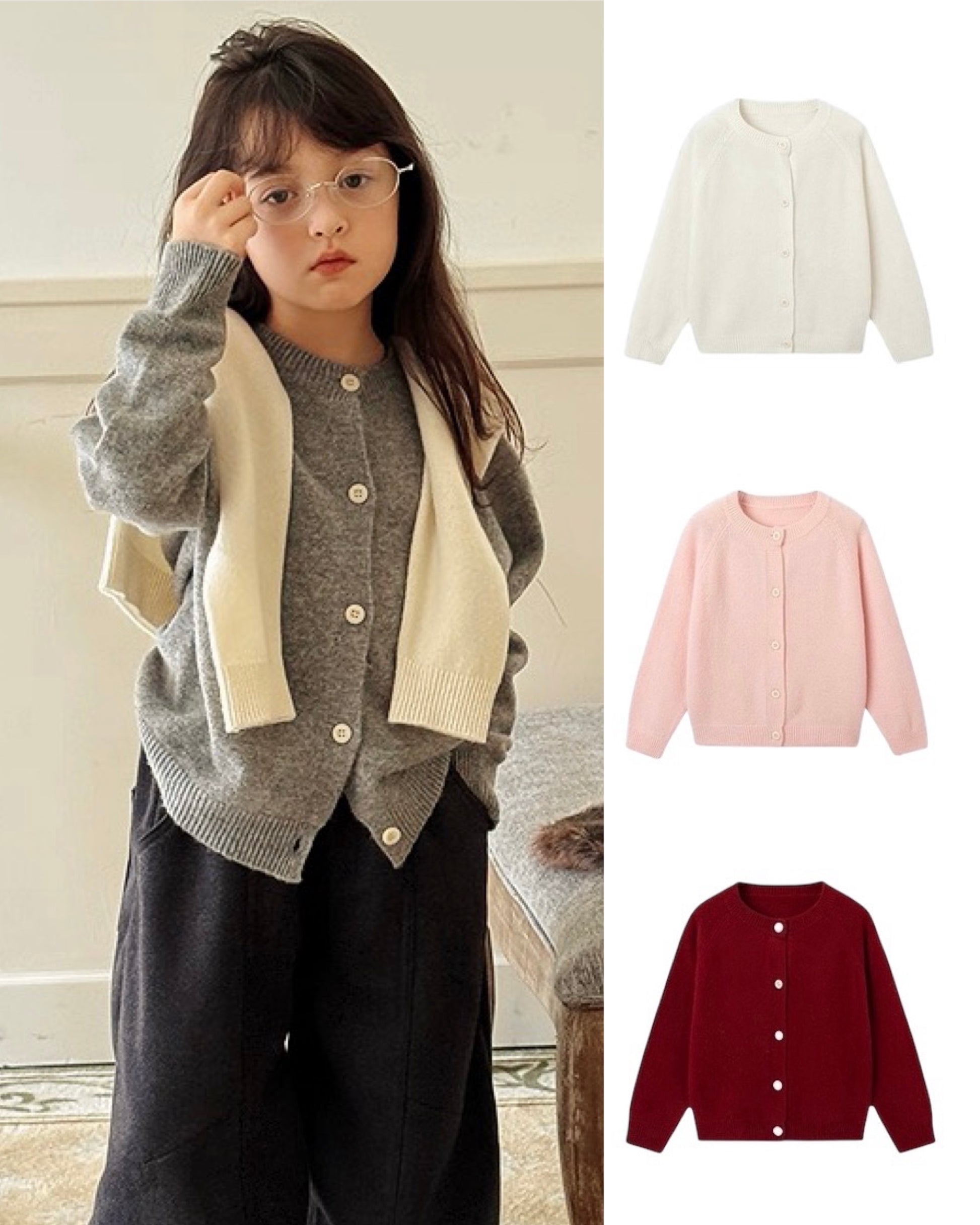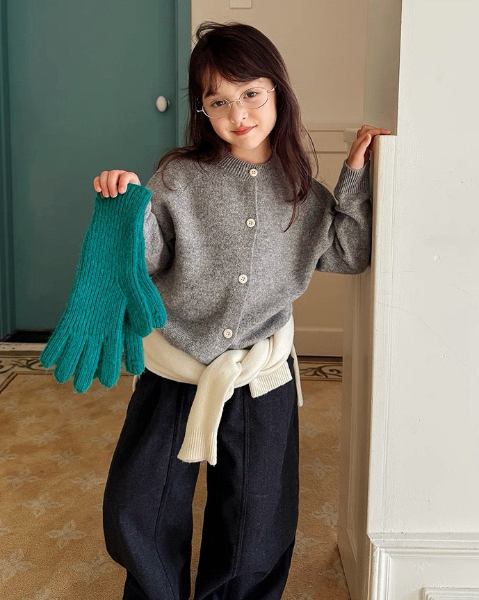 【100-160cm】親子お揃い クルーネックウールカーディガン