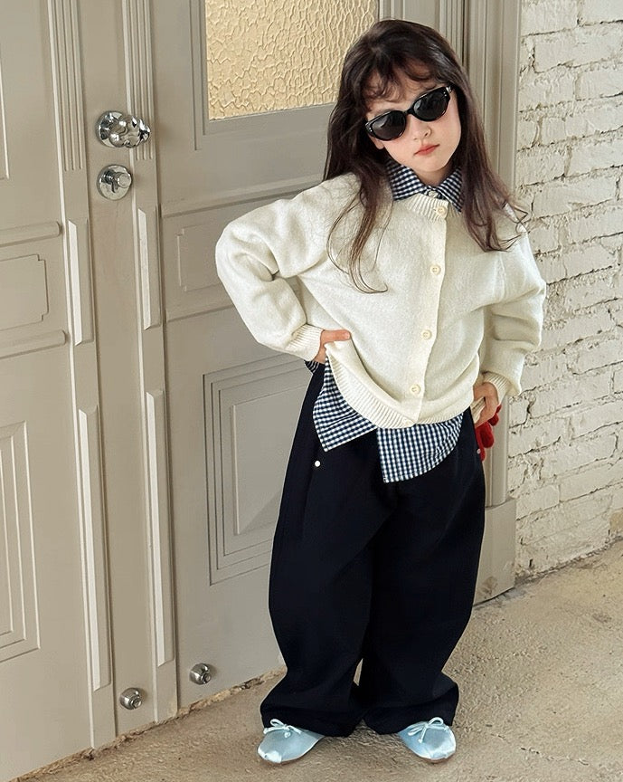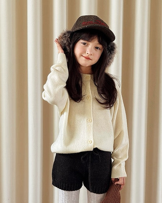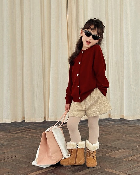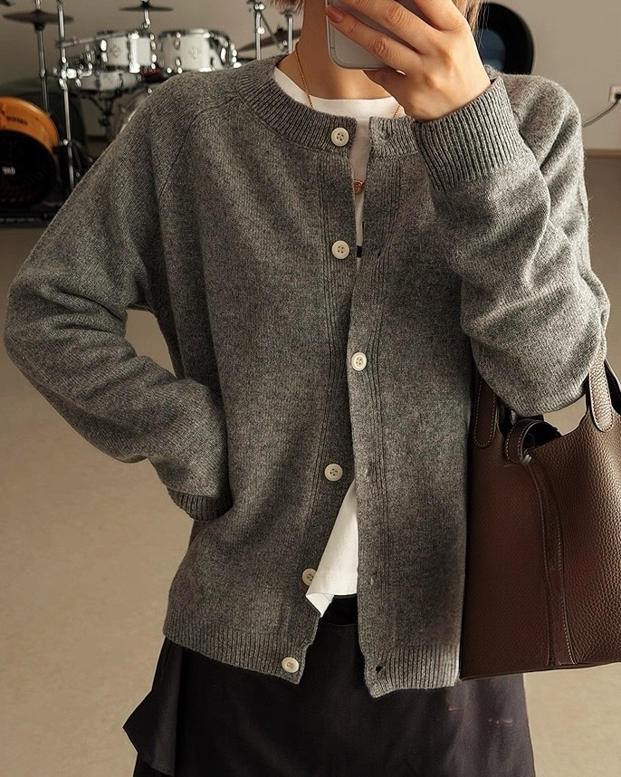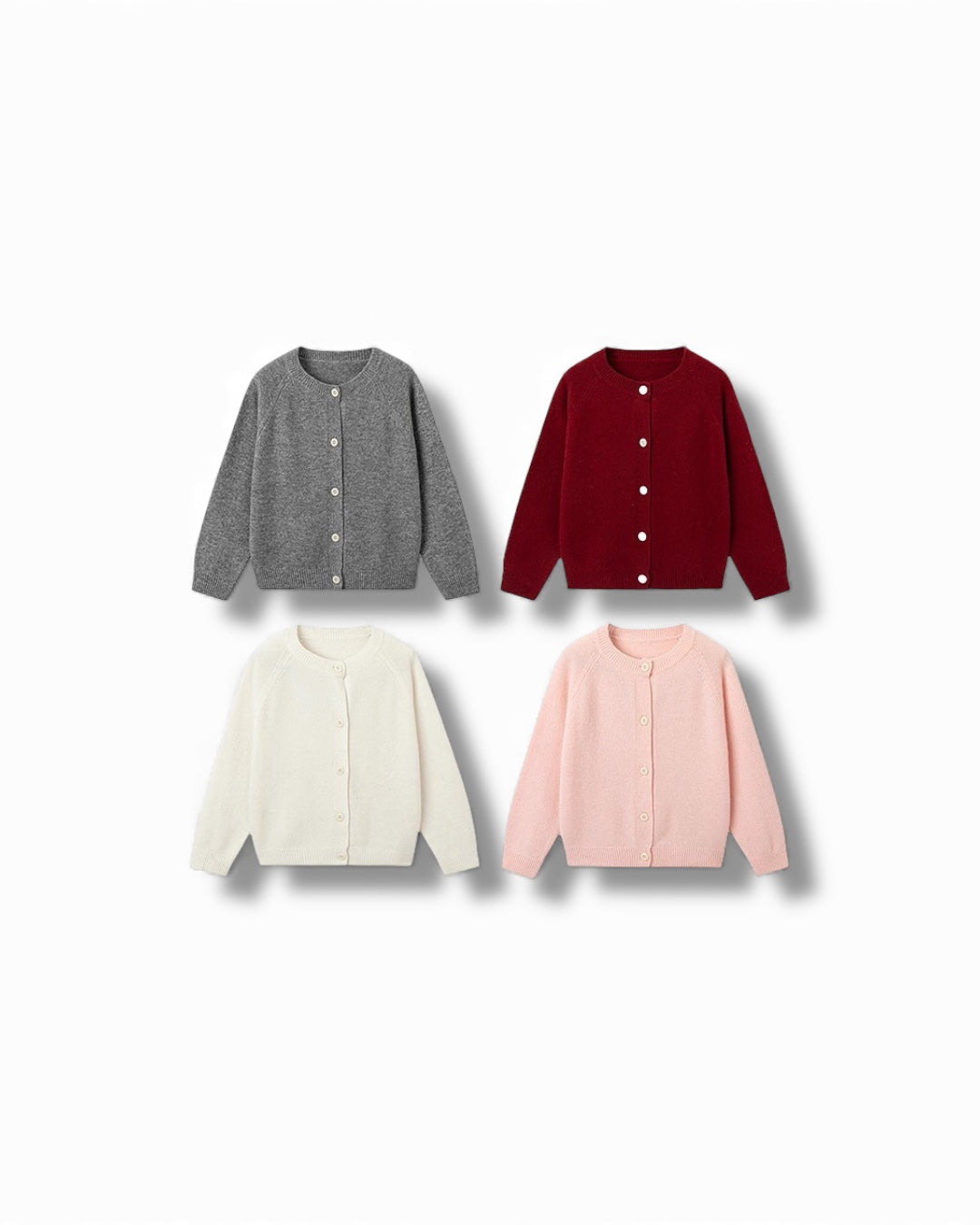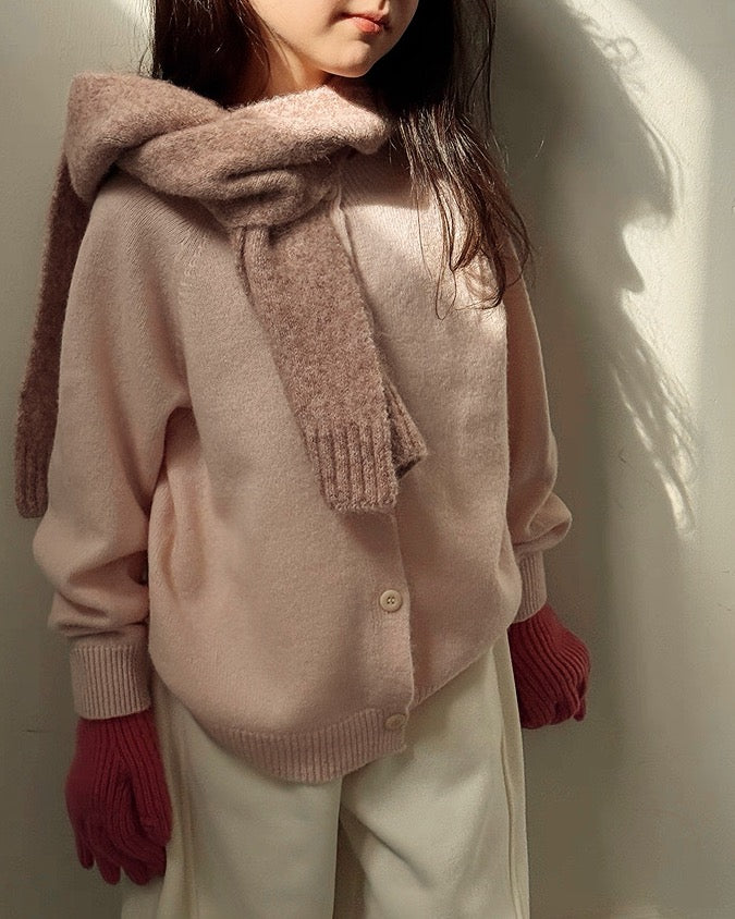 【100-160cm】親子お揃い クルーネックウールカーディガン