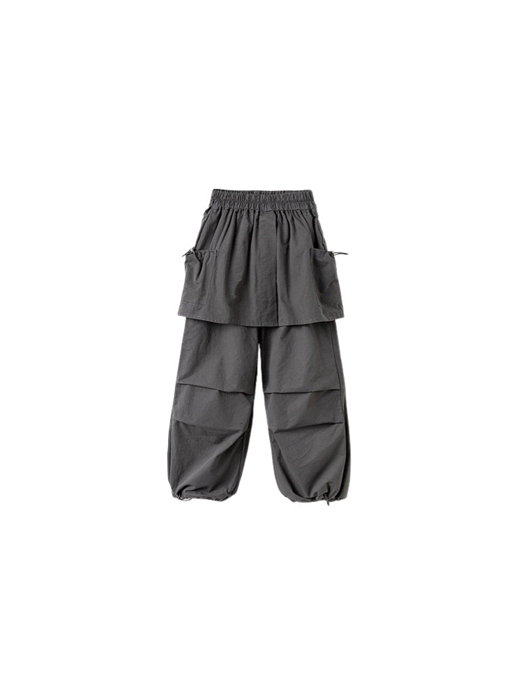 立体感のあるレイヤードデザインが特徴のワイドパンツ。