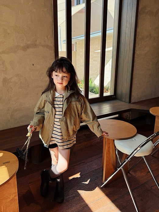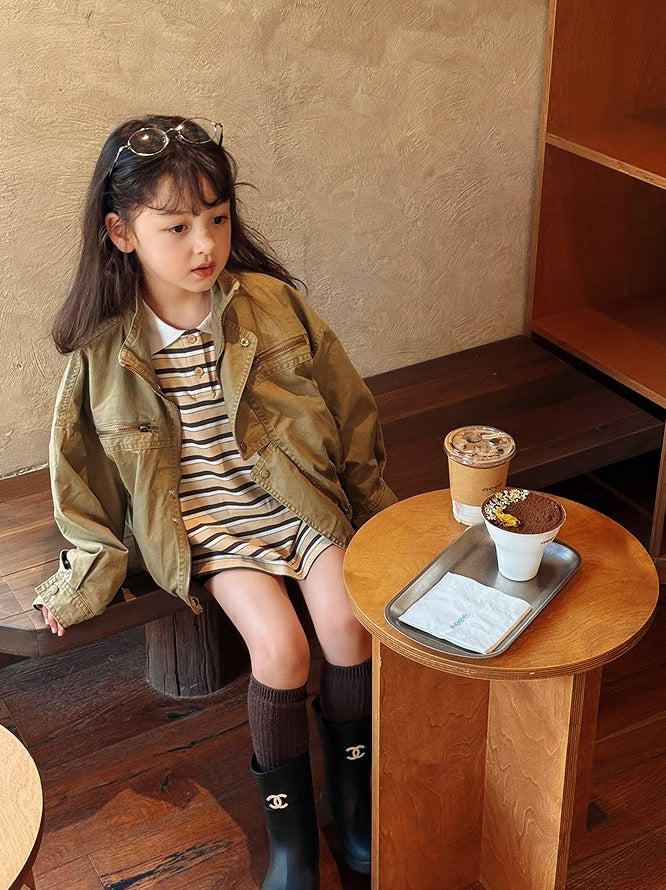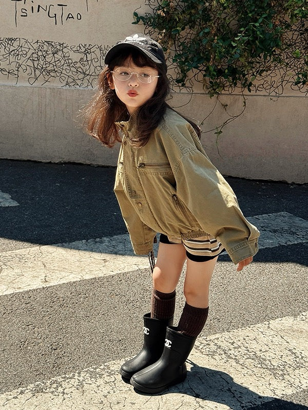【100-160cm】親子お揃い ミリタリースタンドカラージャケット