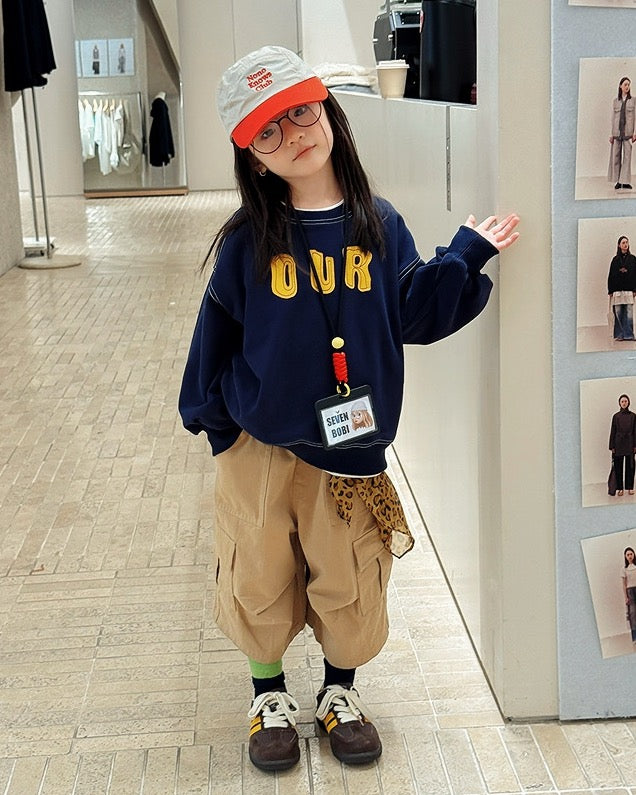胸元に立体感のある「OUR」ロゴをデザインしたスウェットトップス。