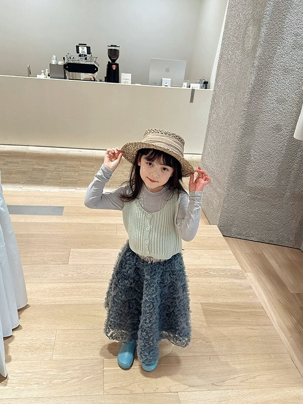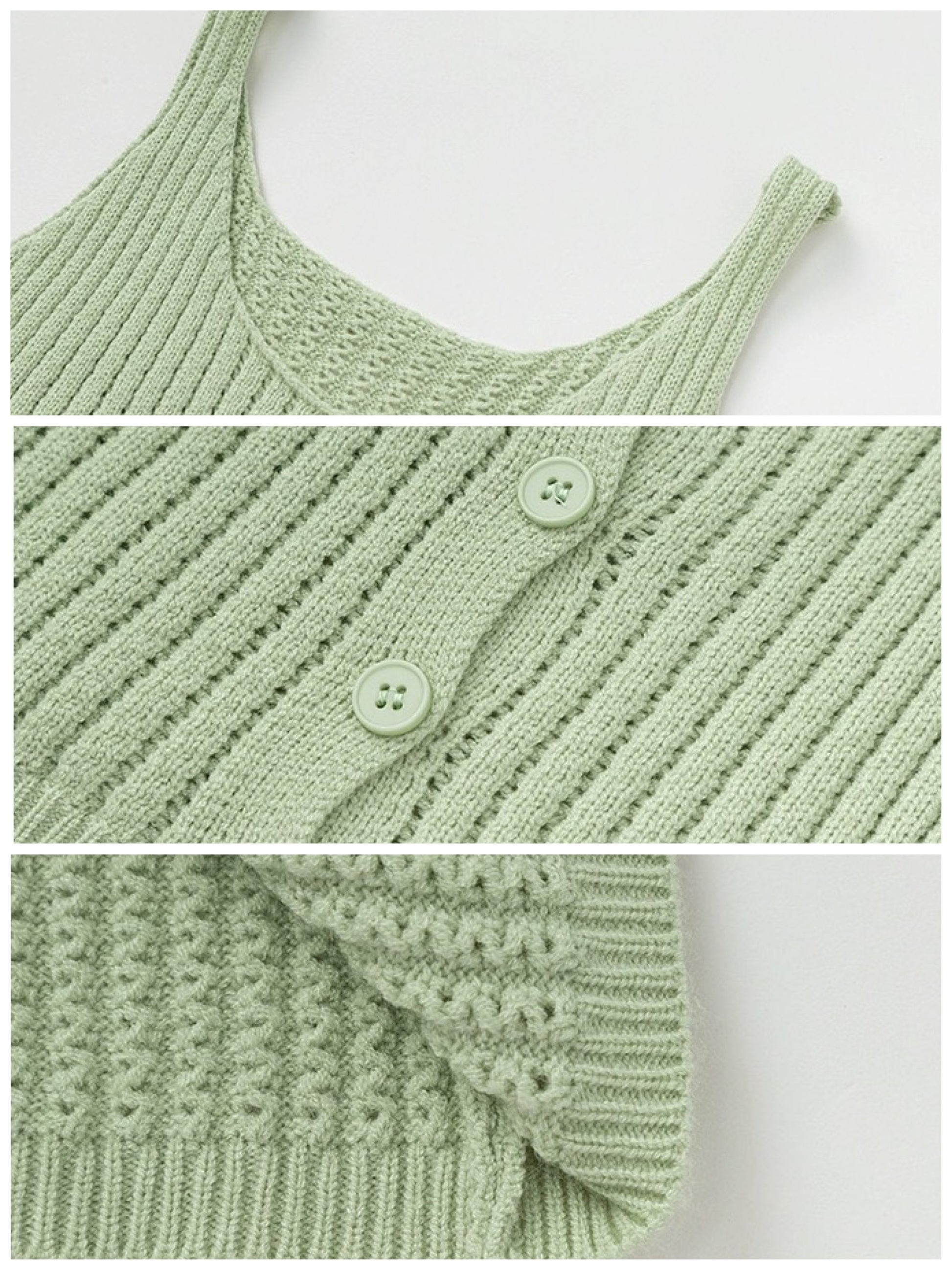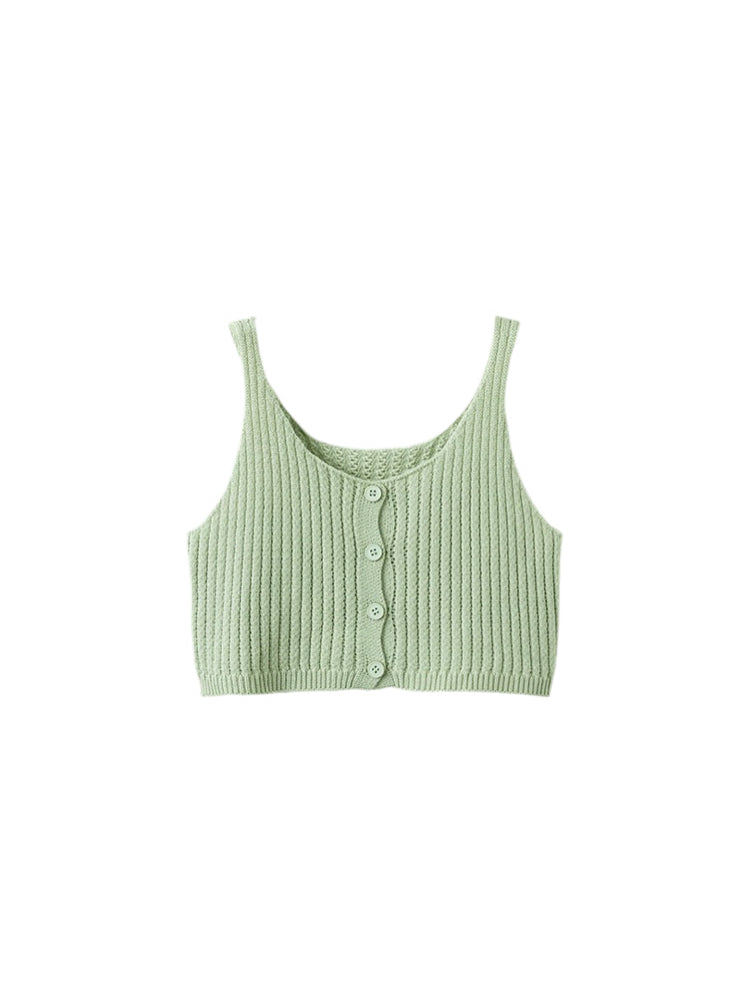 リブ編みで仕上げたクロップド丈のニットトップス。フロントボタンがアクセントになり、シンプルながら存在感のある一枚。伸縮性のある生地で、レイヤードスタイルやカジュアルコーデに活躍します。