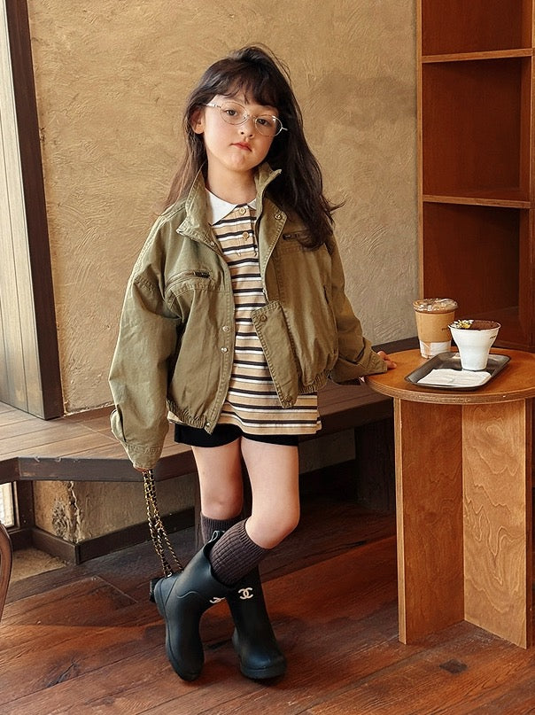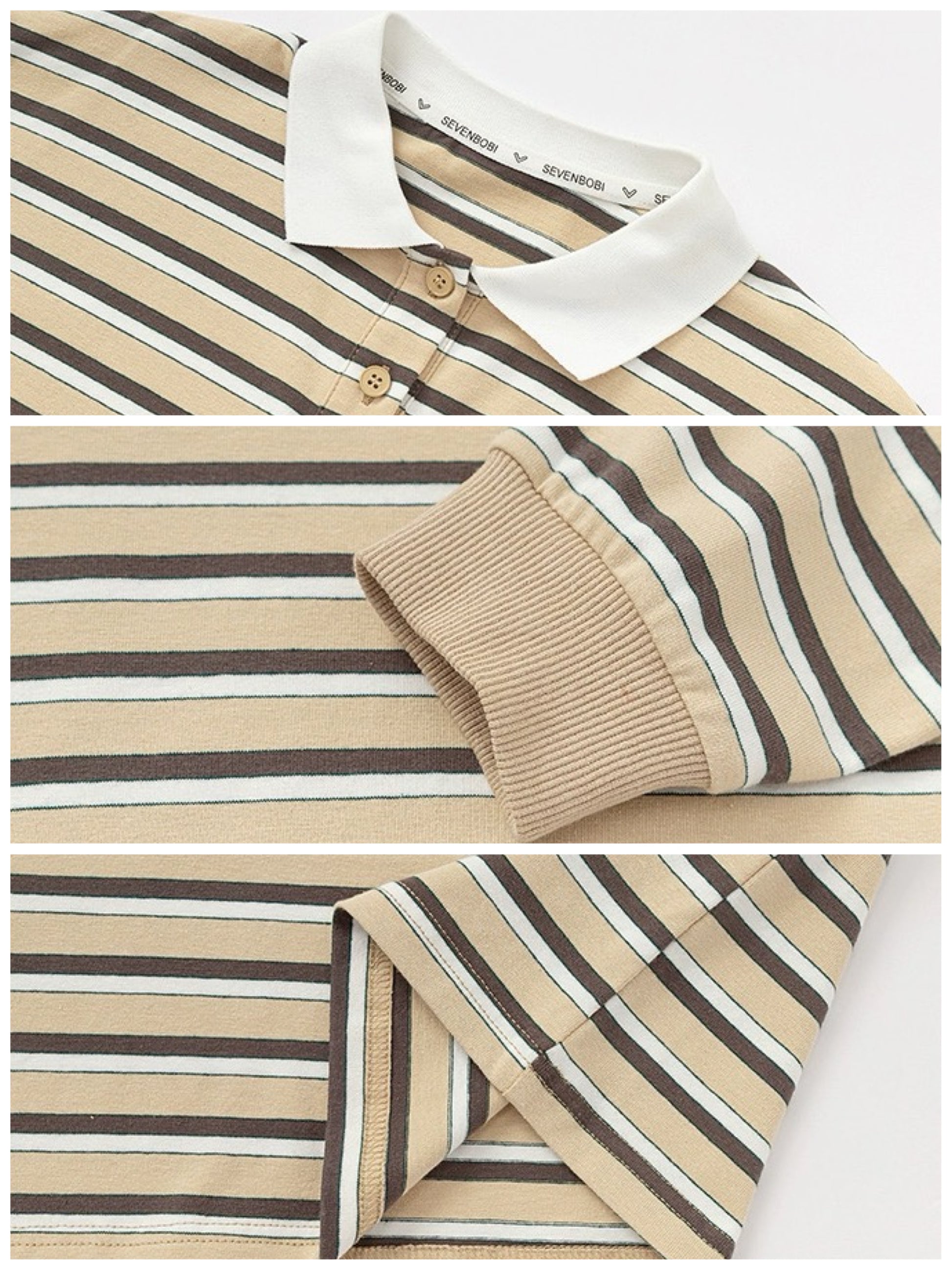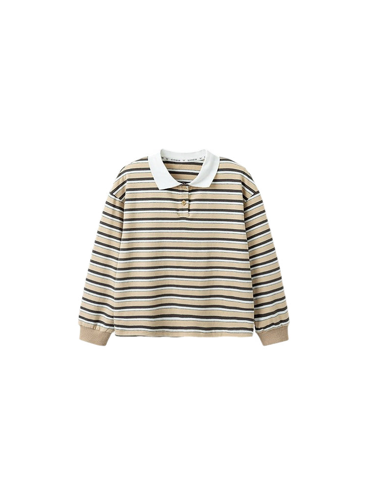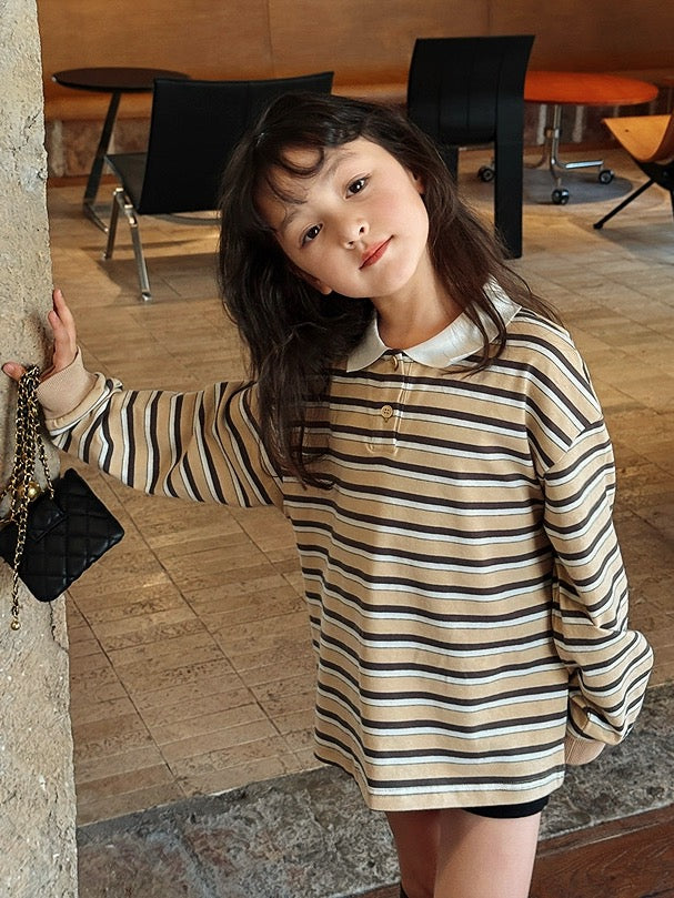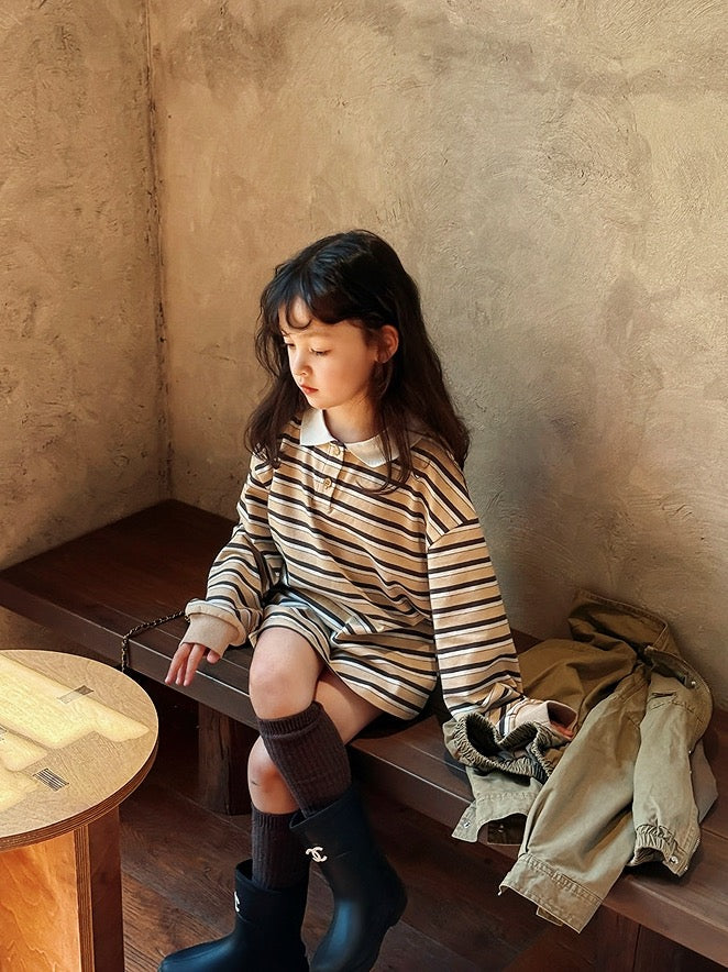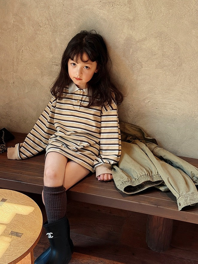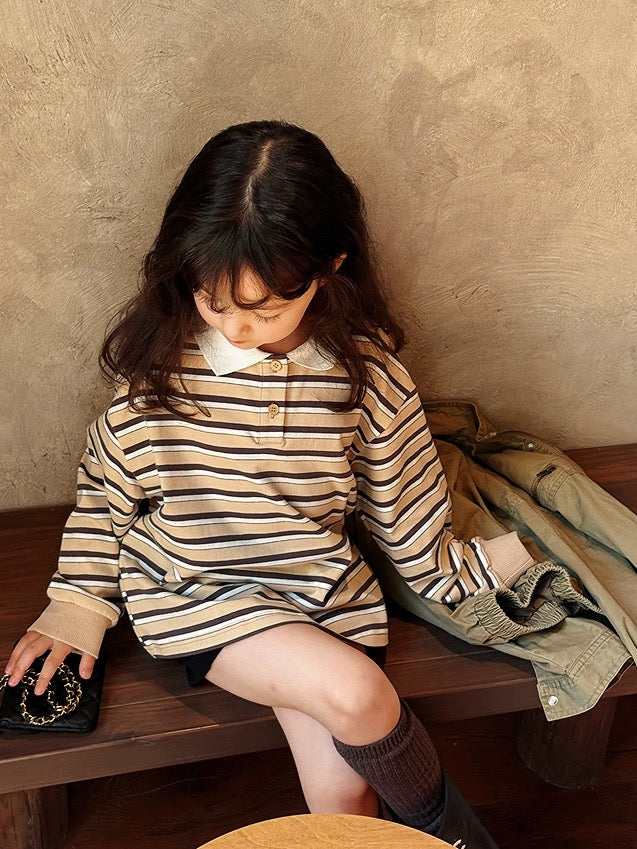 ベーシックなボーダーデザインに白襟を合わせたチュニックトップス。